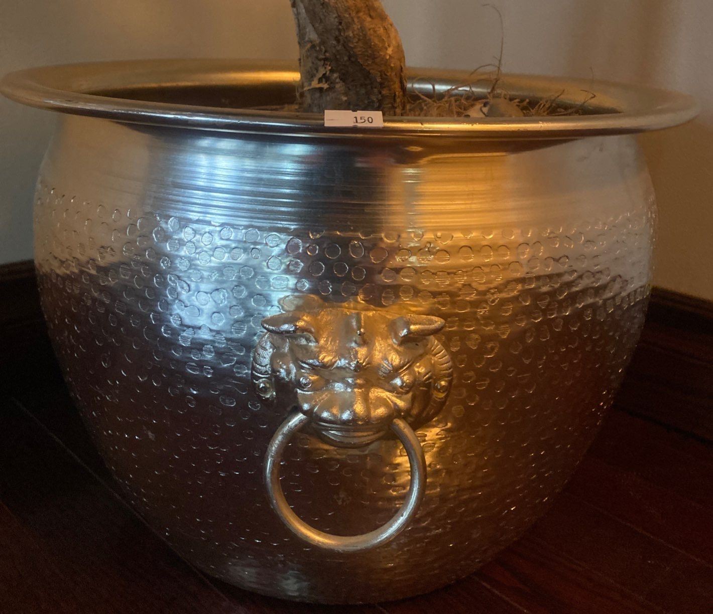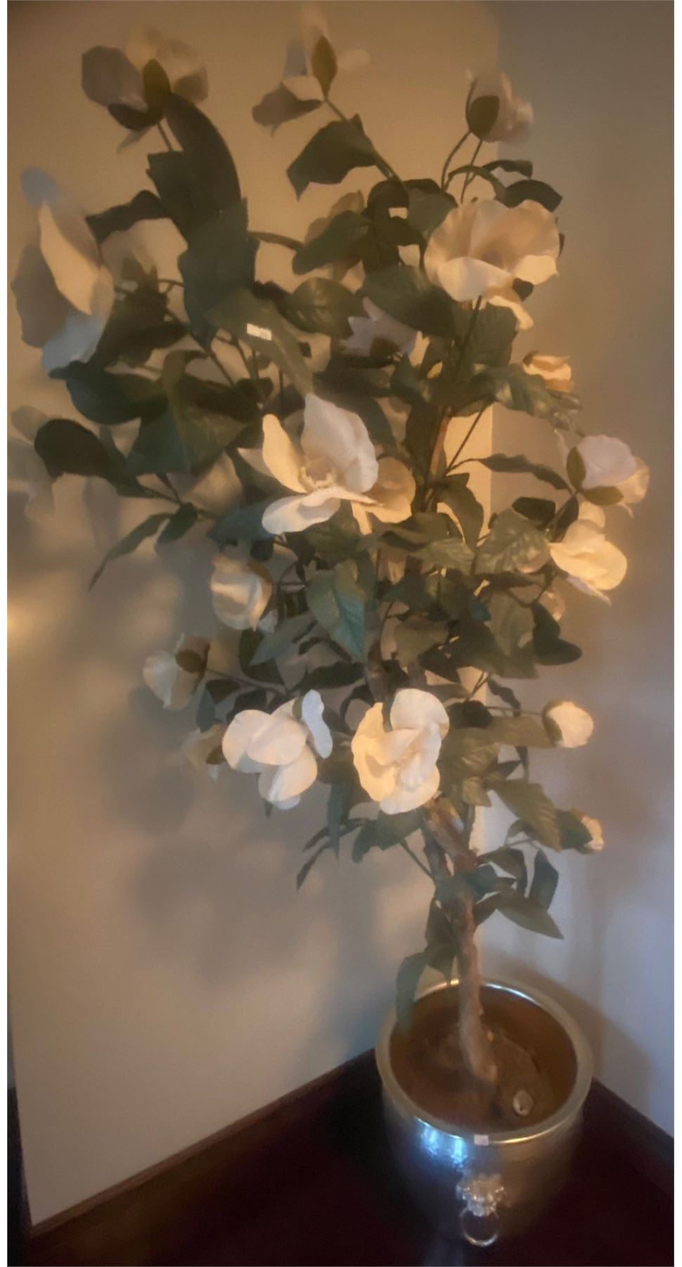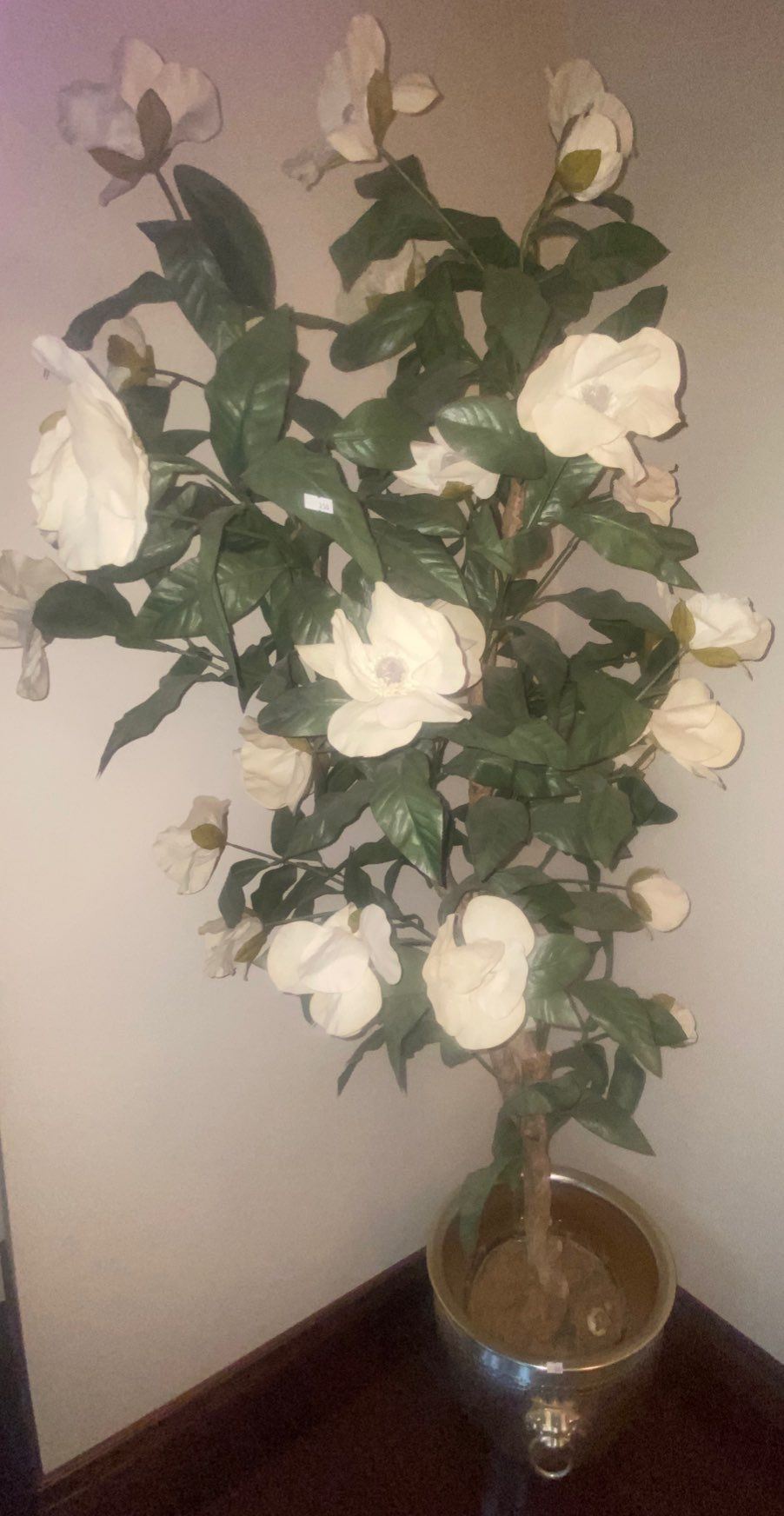 6 Foot Tall Flowering Silk Plant w/ Decorative Fudog Head Planter