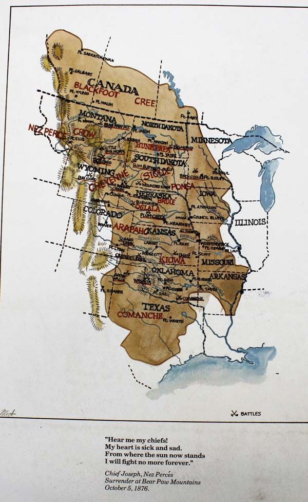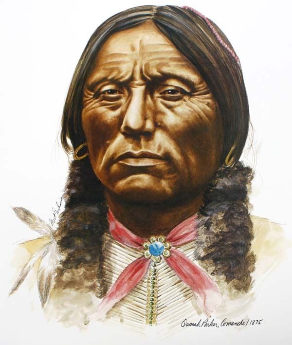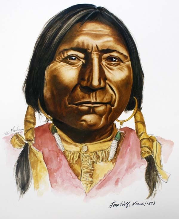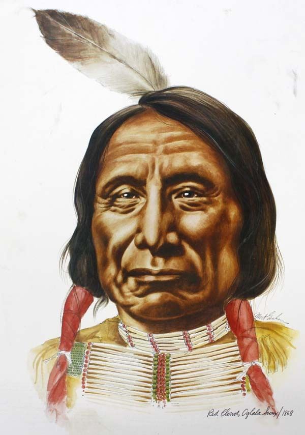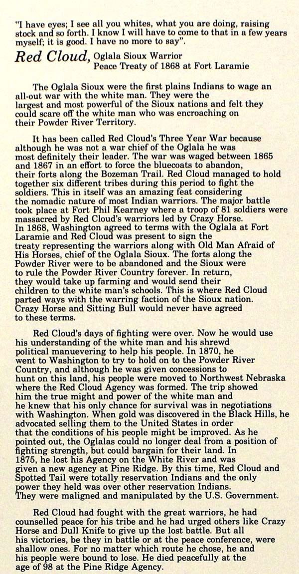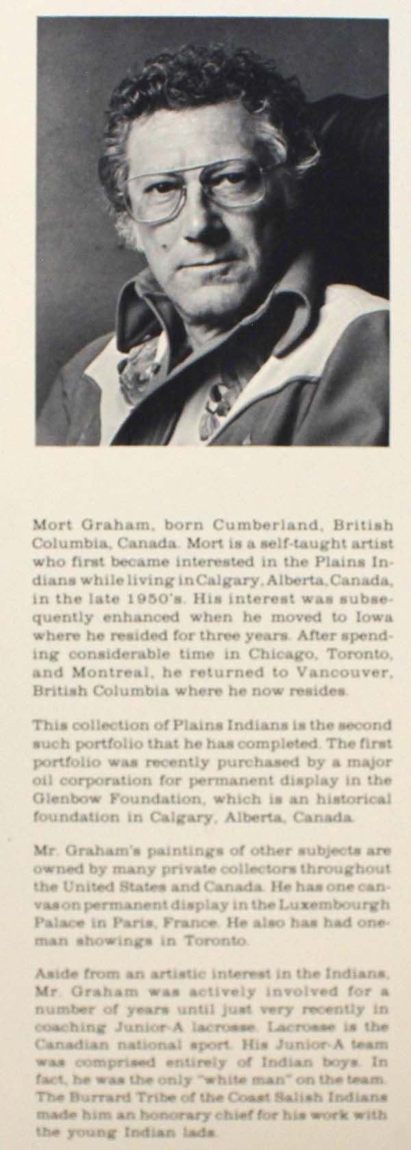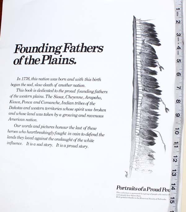 6 Founding Fathers of the Plains Prints Portfolio, prints by Mort Graham, includes Red Cloud (Oglala Sioux/1868), Chief Crazy Horse (Oglala Sioux/1875), Dull Knife (Cheyenne/1878), Sitting Bear (Kiowa/1871), Quannah Parker (Comanche/1875), Little Raven (Arapaho/1865), prints measure 14" x 17", printed by Stuart Broadcasting Company 1976
