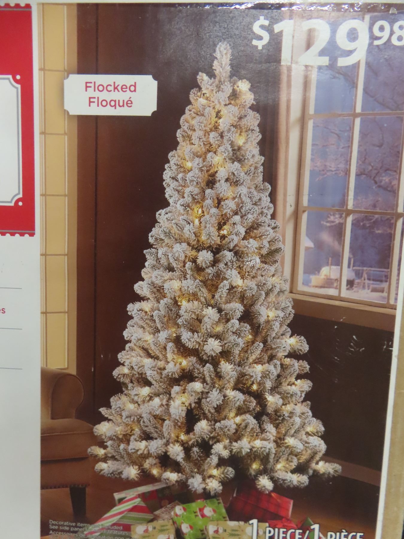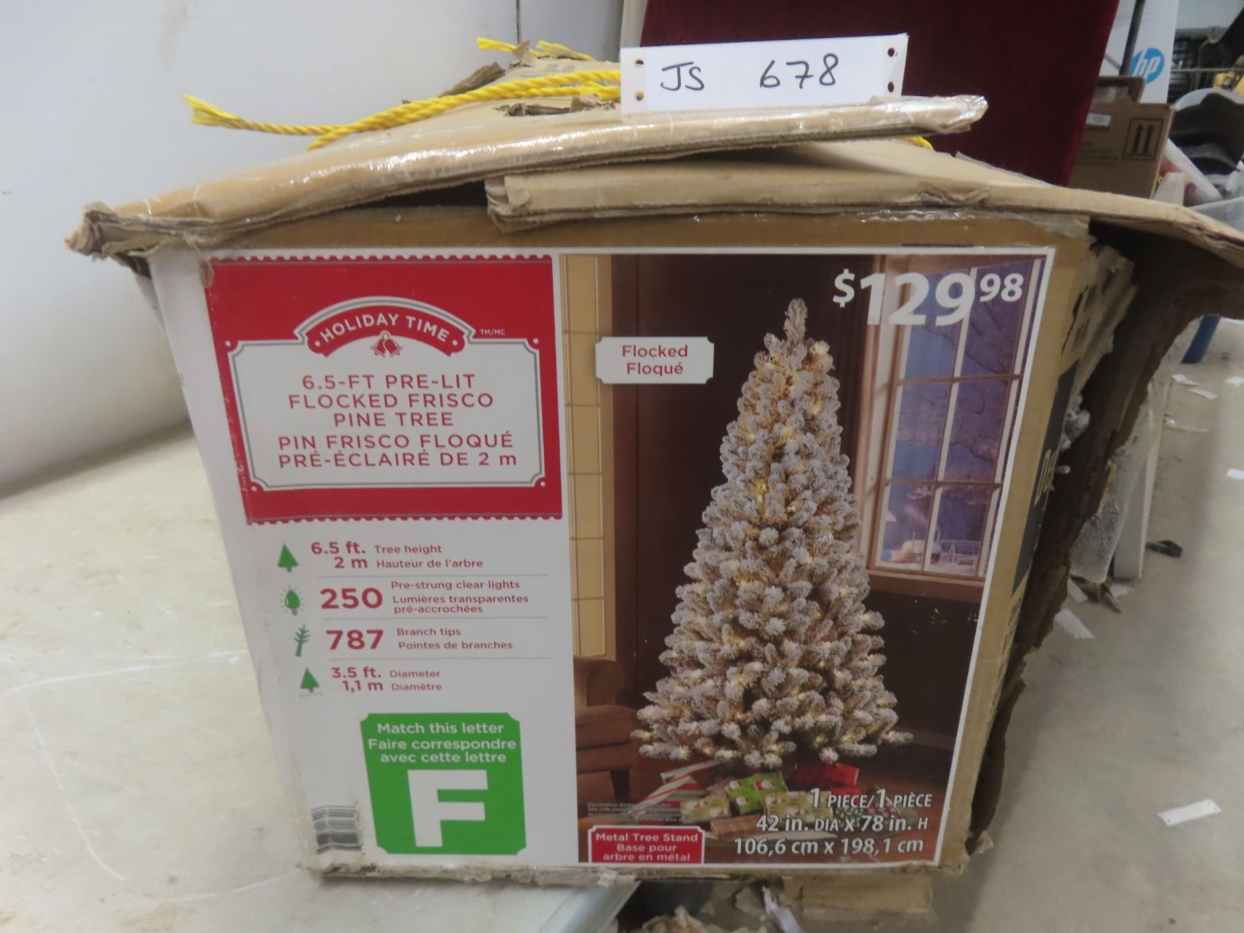 6 Ft 5" Pre-Lit Flocked Frisco Pine Tree.