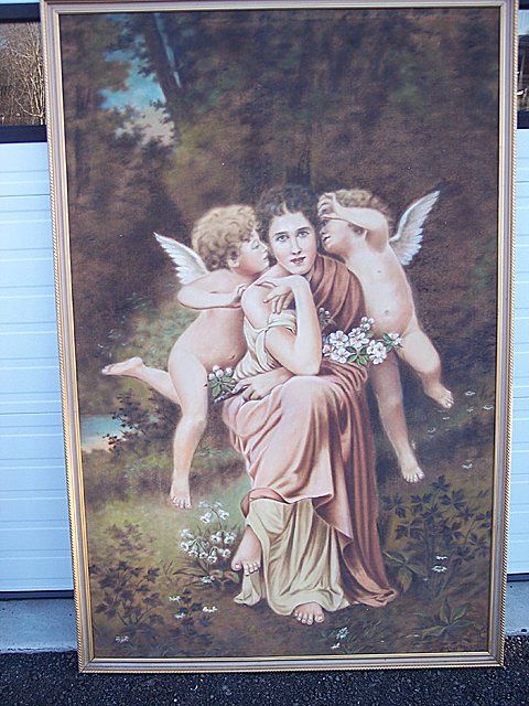 Painting is on fabric or linen, possibly could have hung in theater, opera house, or Victorian home. Valued at $400-$800, a beautiful representation of Victorian splendor. Painting measures 46" wide by 70" tall including the frame.