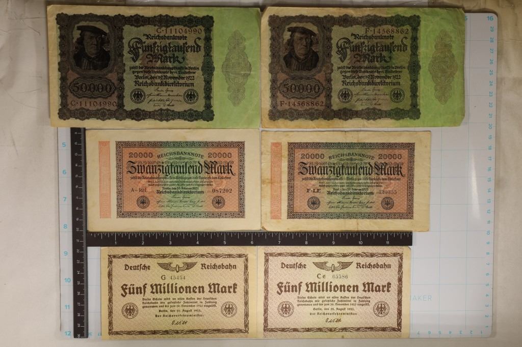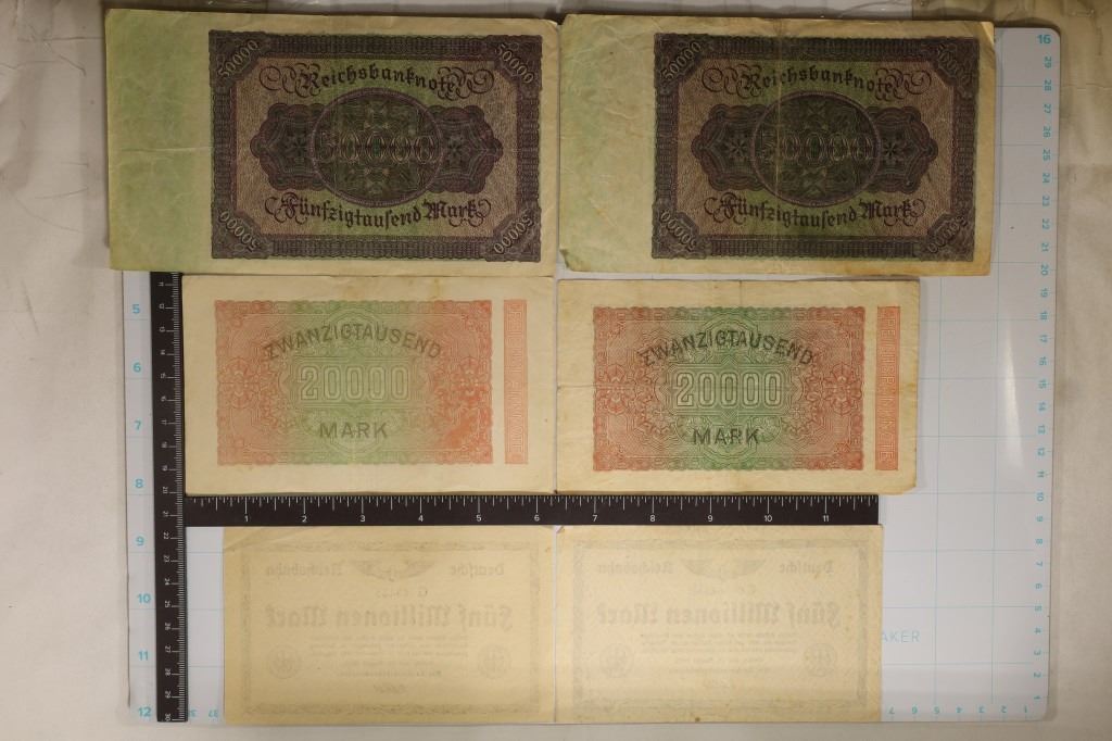 1923-20,000 MARK BILLS (SOME STAINS NOTED) AND 2-1922-50,000 MARK BILLS (CIRCULATED