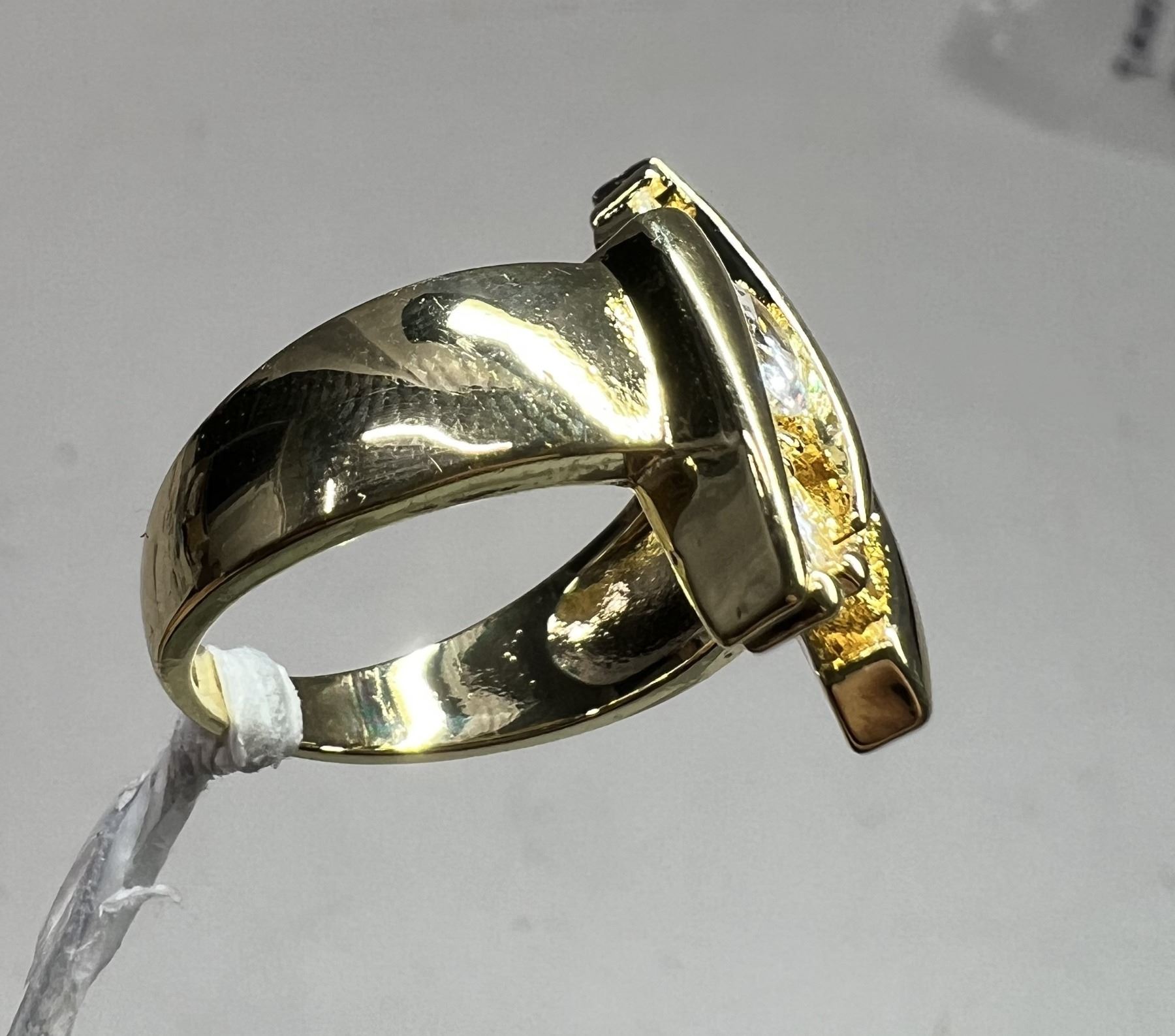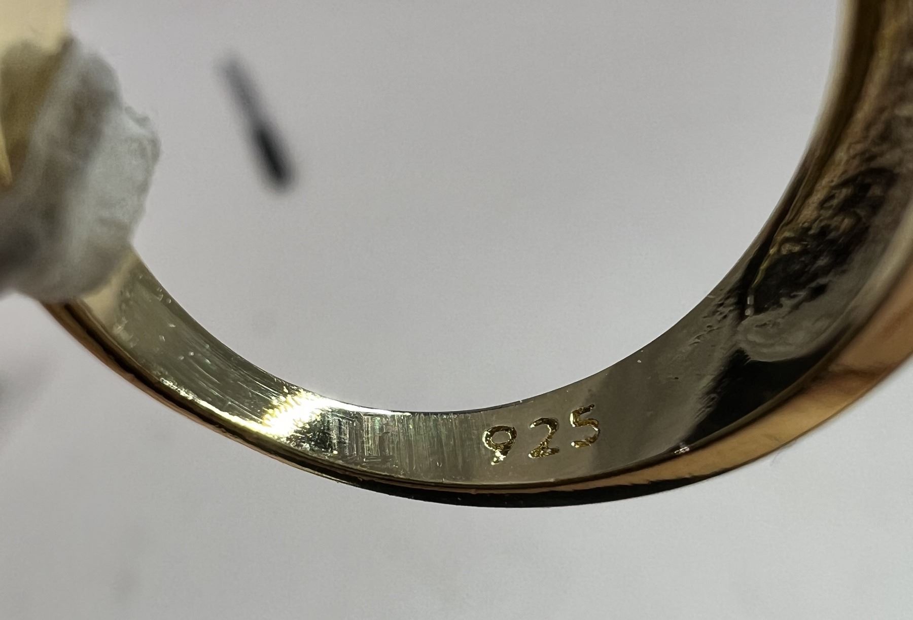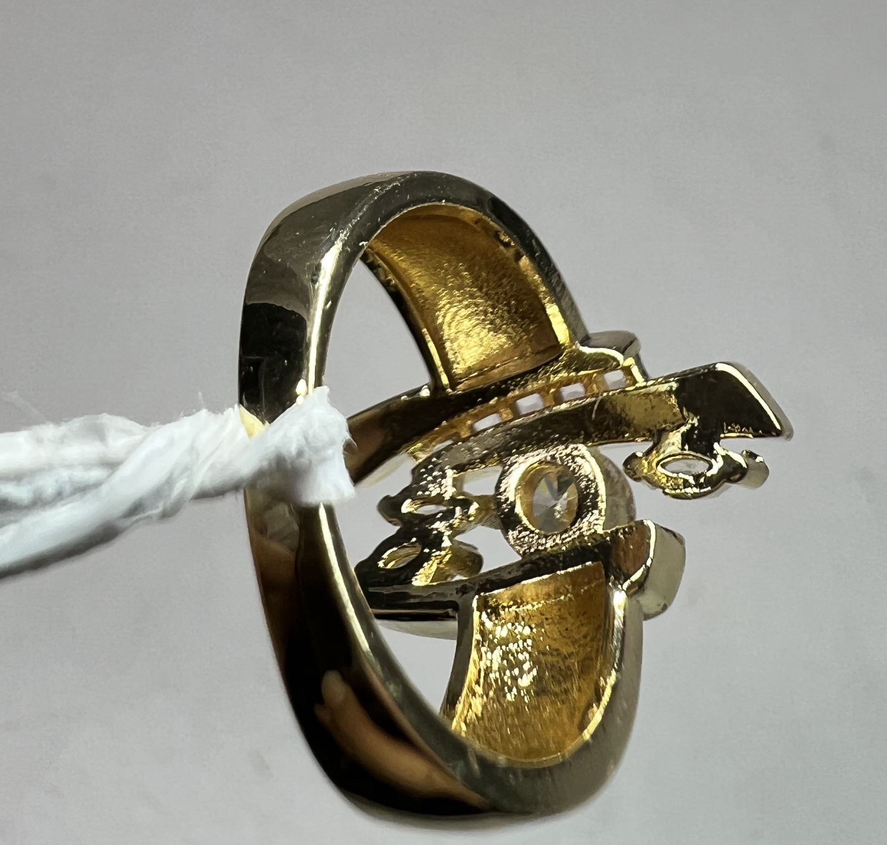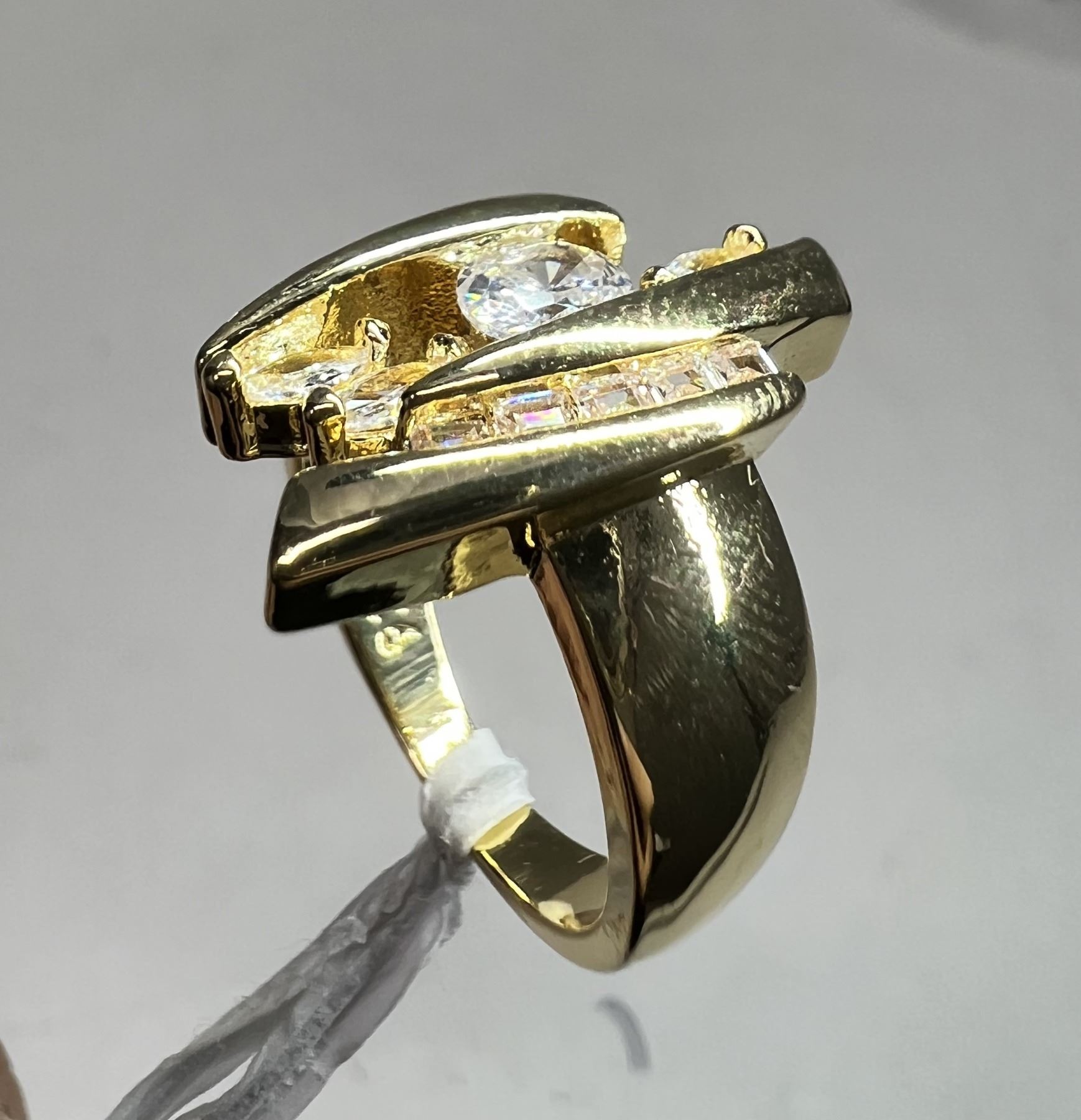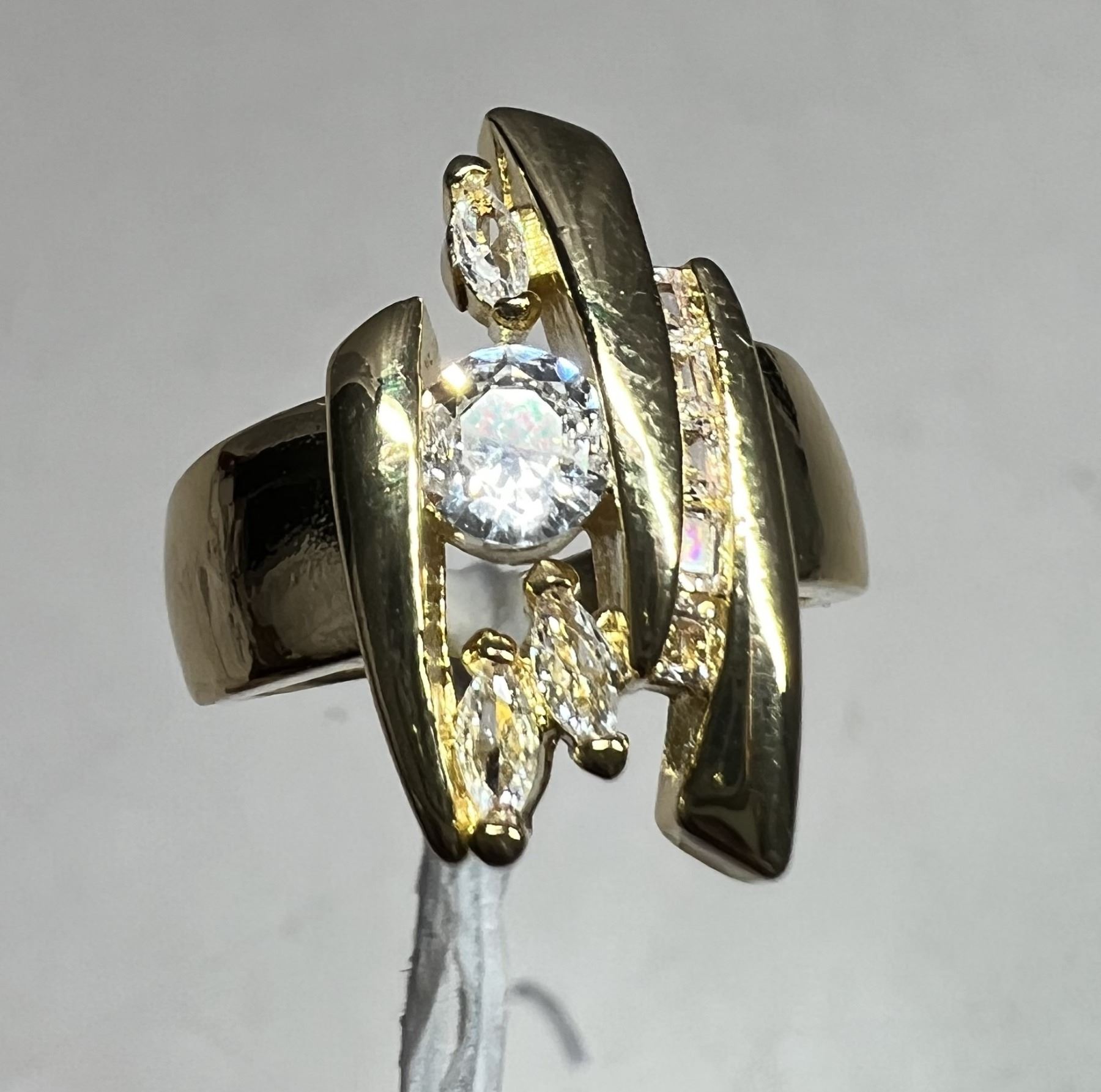 6. Gem Ring, Lab Created, Claw and Channel Set, Gold Overlay, Size 7