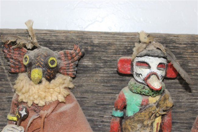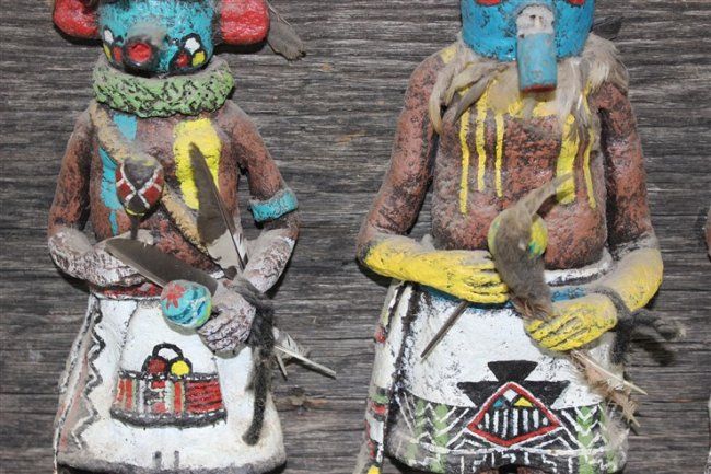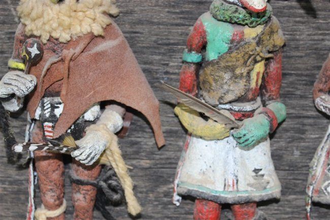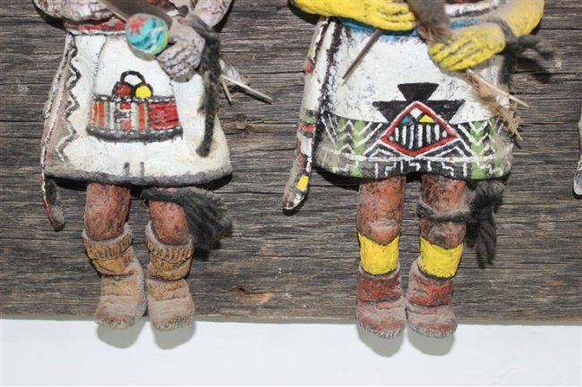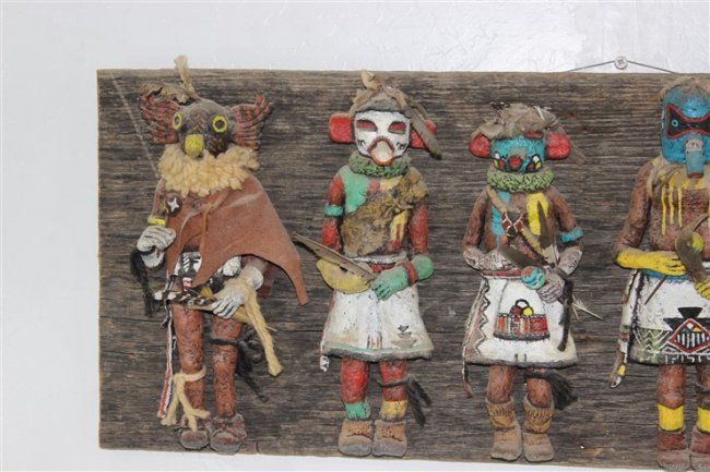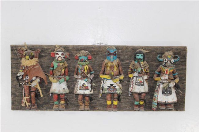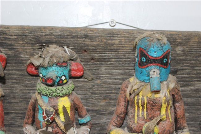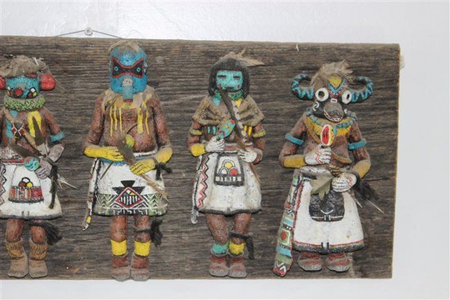 wall art, each kachina approx size 10 1/2" x 4", approx size of wood mounting 33 1/2" x 12 1/2"