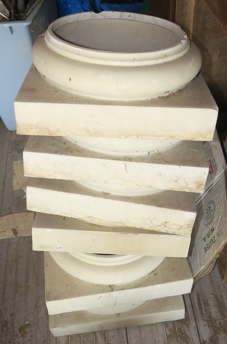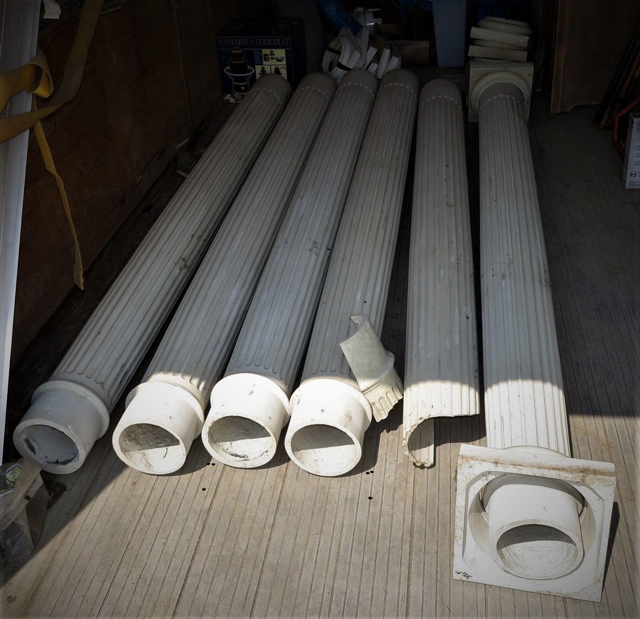 6 Hollow Columns + Trim (1 Damaged) 95" Long, 7" Diameter