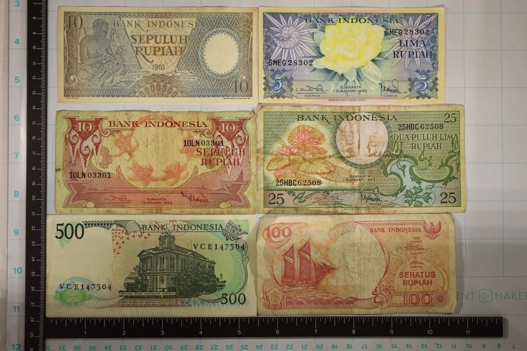 1959-10 RUPIAH, 1959-25 RUPIAH, 1992-100 RUPIAH AND 1988-500 RUPIAH