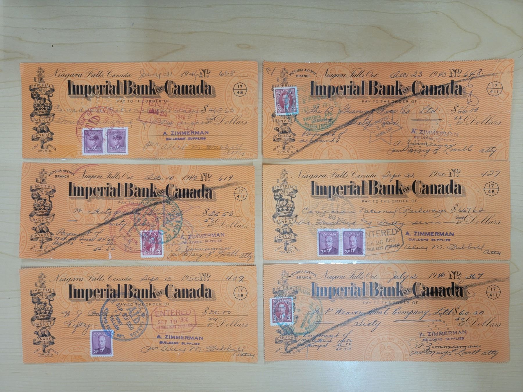 6 Imperial Bank of Canada cancelled cheques