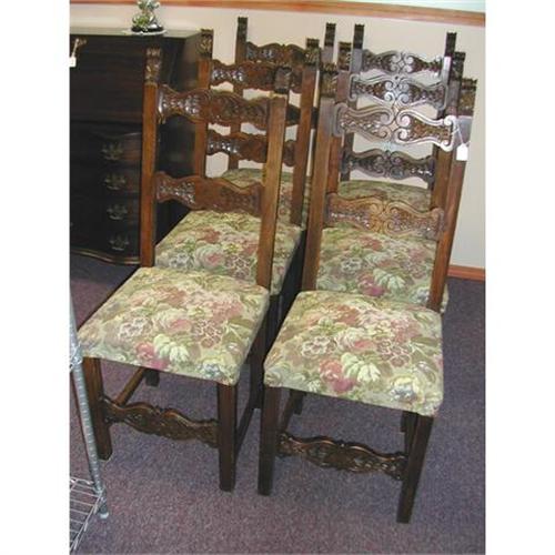 These are a Great set of Italian walnut chairs, circa 1920's. Upholstery is in excellent condition probably been replaced at one time. Very nice carvings on chairs, all sturdy and strong. For additional photo's or information on this piece please contact us by clicking on the "EMAIL DEALER" button, we'll be happy to supply you with any information on this piece that is requested including a shipping quote if needed. Thank you for looking.