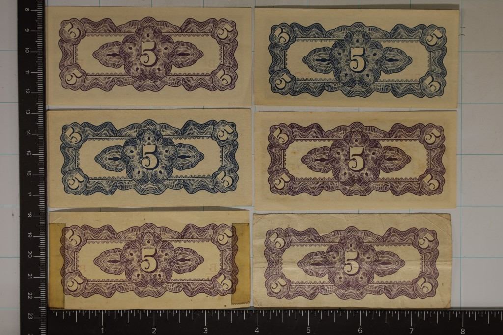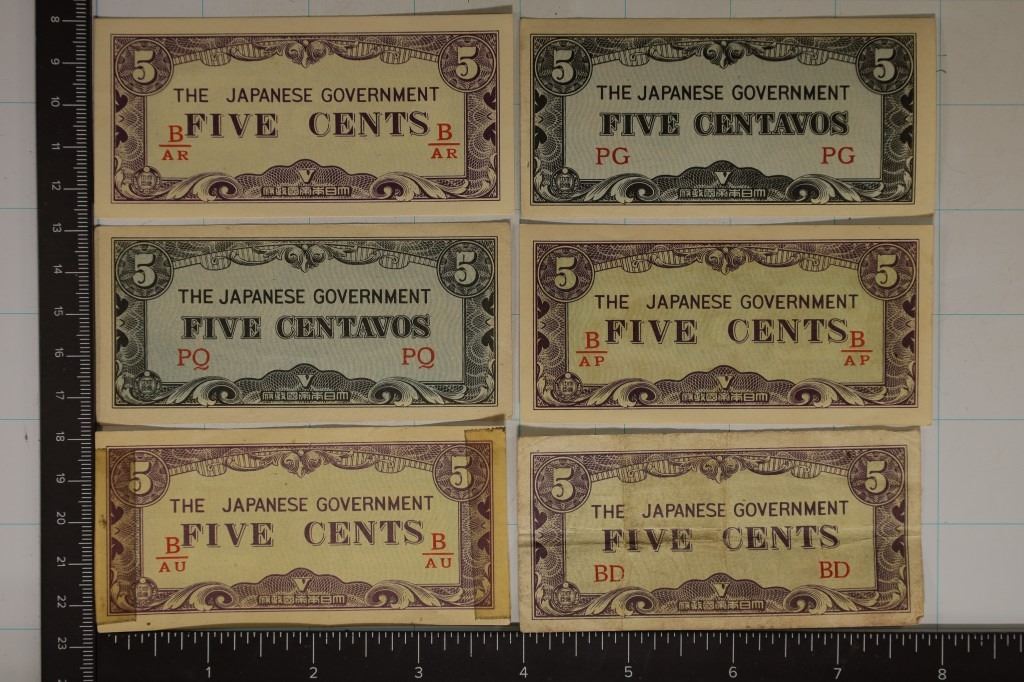 ALL ARE FIVE CENTS ISSUED IN THE PHILIPPINES IN WWII. FOUR ARE CRISP UNC