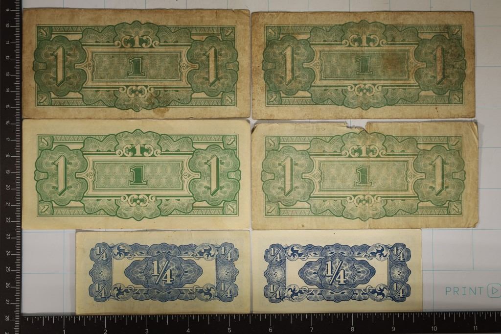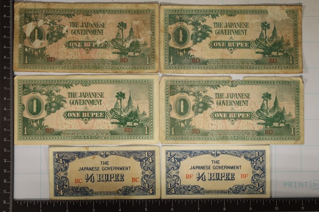 CURRENCY: TWO 1/4 RUPEE'S AND FOUR 1 RUPEE'S
