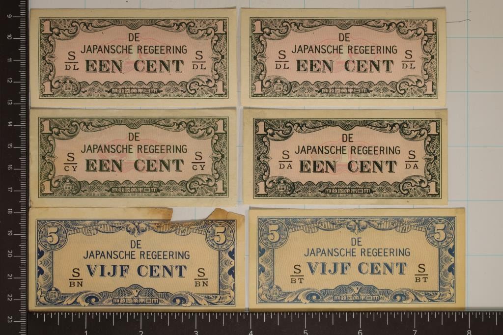 5 ARE CRISP UNC, 3-ONE CENT AND 2-5 CENT. ONE OF THE 5 CENT IS TORN ON THE TOP EDGE