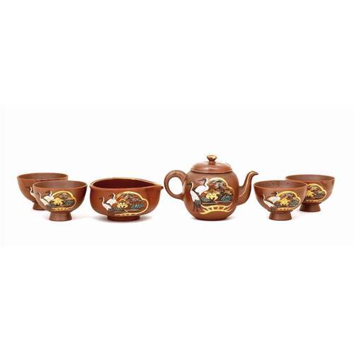 6 Japanese Bizen Ware Teaset Mark "Bizen" & Signed
