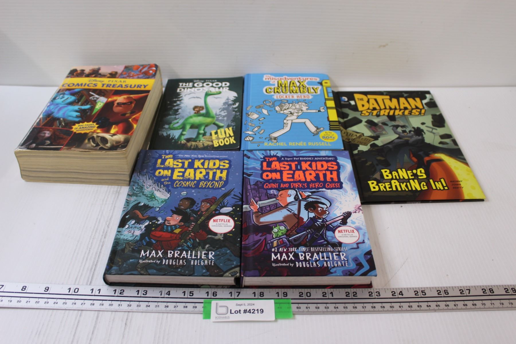 (6) Kids Books (Ages 8-12): Last Kids on Earth Edition, Batman, Disney Comics, Misc.