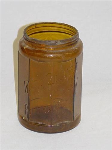 6" LIGHT AMBER GLASS TOBACCO JAR - WM. S. KIMBALL and CO. ROCHESTER N.Y. - NO LID, TOP RIM ROUGHNESS;