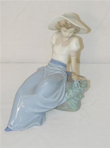 6 LLADRO FIGURE OF YOUNG GIRL SEATED ON ROCK W/ BIRD- MARKED ON BASE