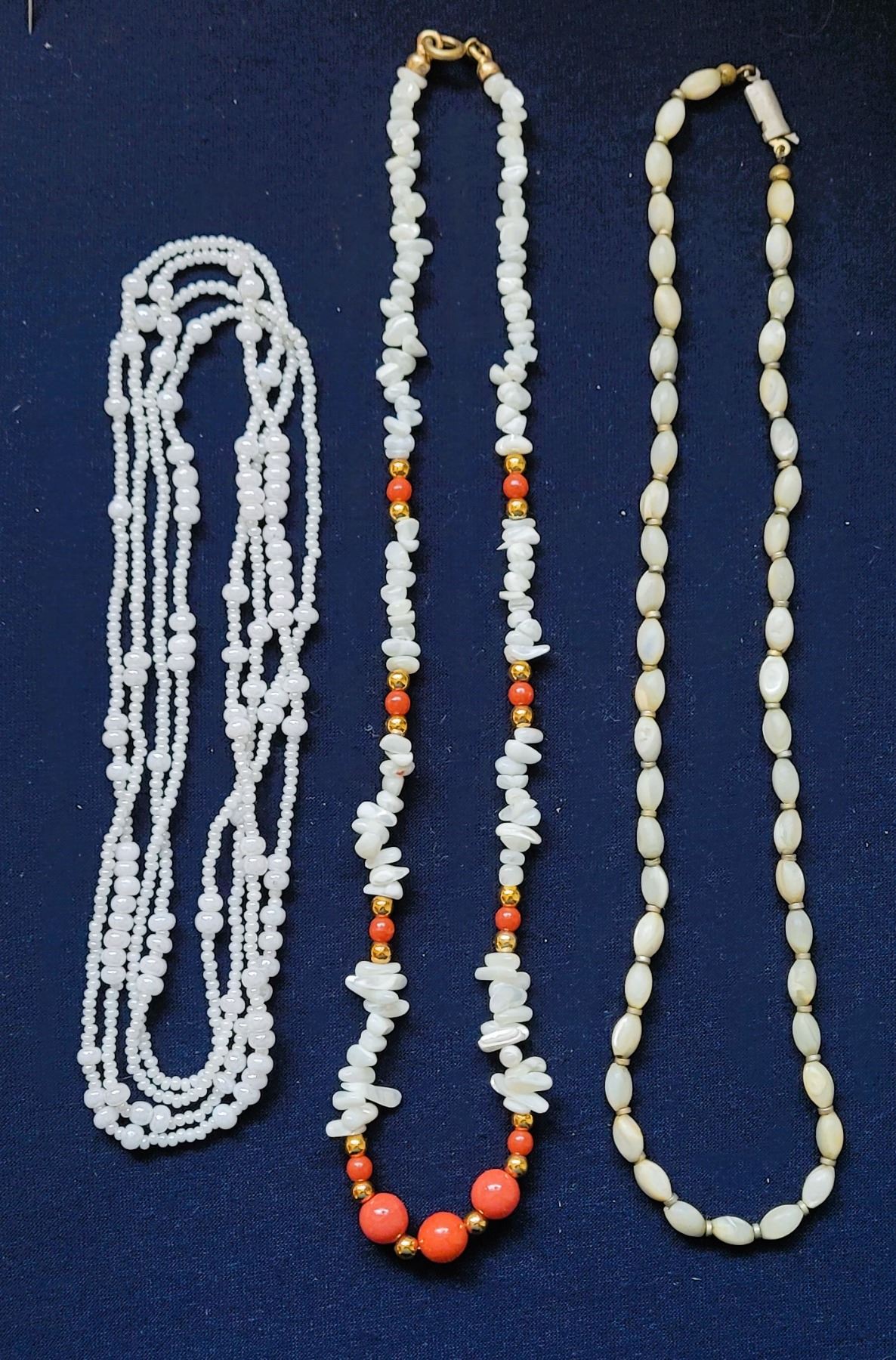 6) LOT OF 3 NECKLACES, INCLUDES PUKA SHELL AND