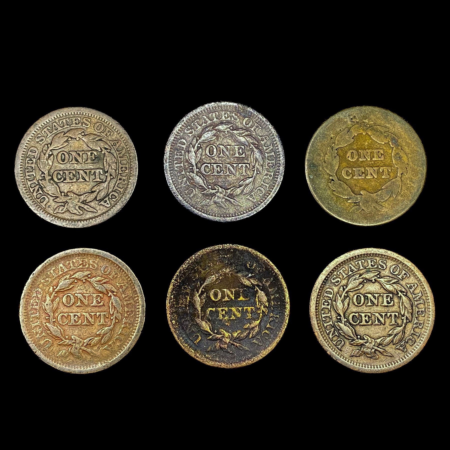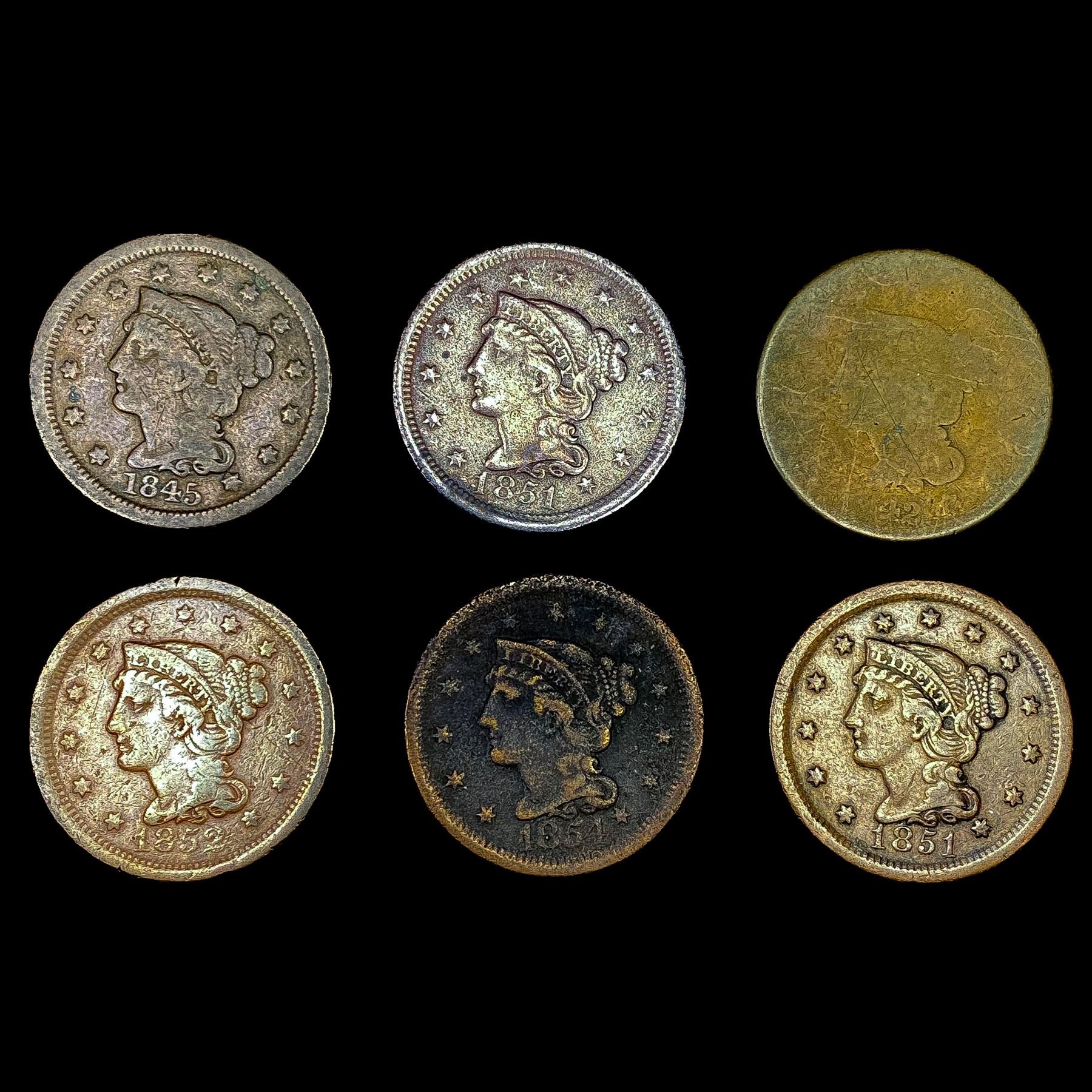 [6] Large Cents (1842, 1845, (3) 1851, 1852) NICEL