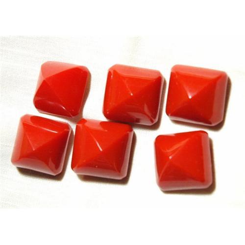 6 huge cherry red bakelite buttons. The color is darker than what it show in the pictures. There are 4 paneled pyramid shape buttons. At the base they are 1" squared and 3/4" high from base to point. There is alot of bakelite here to use as is or carve into something else. The condition on all of them is mint.