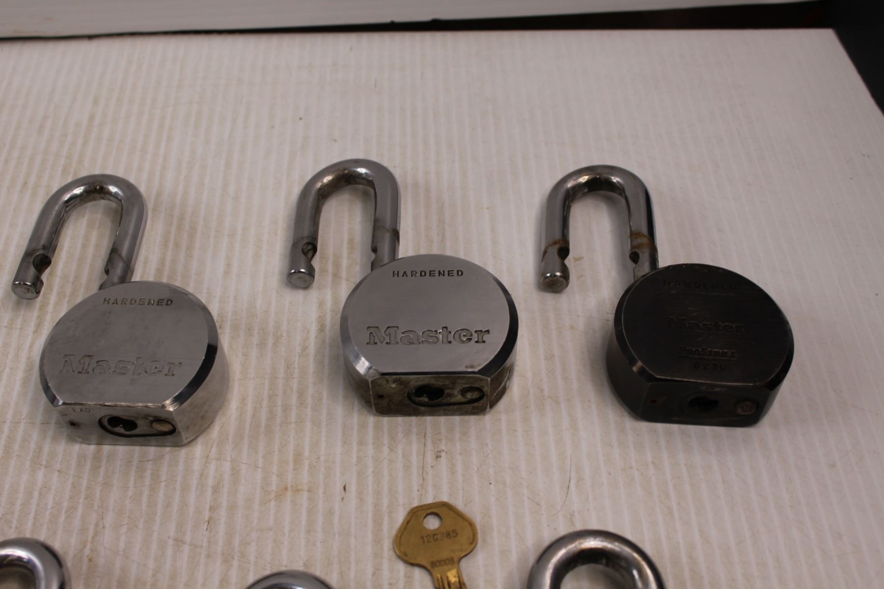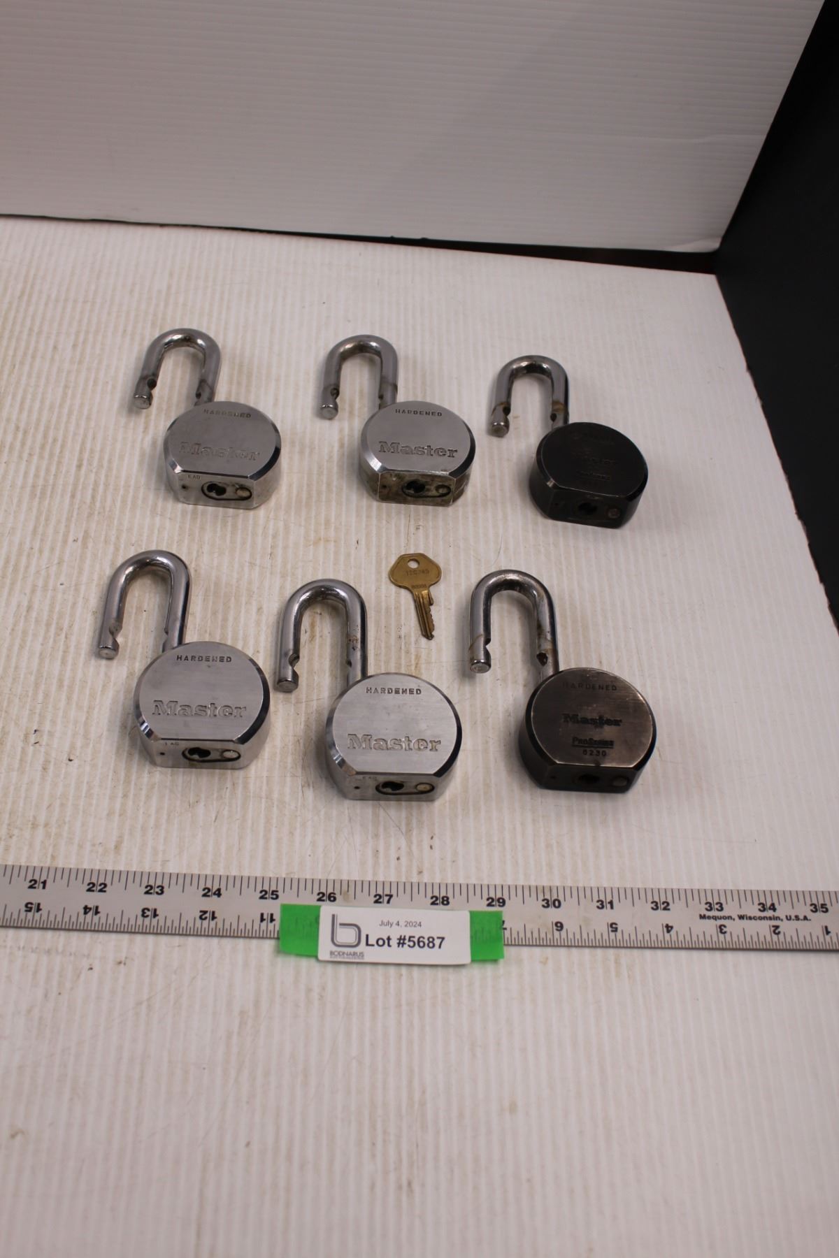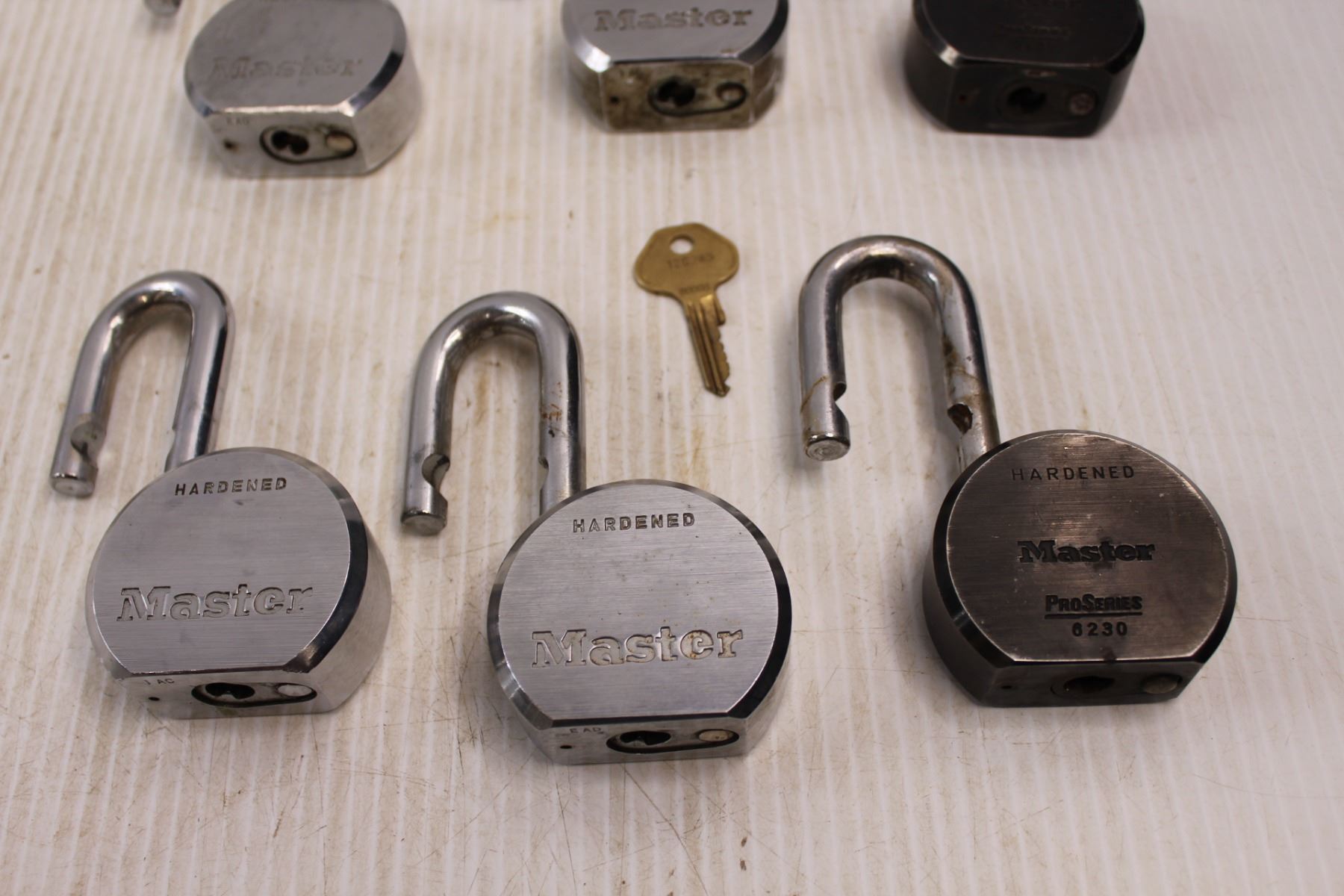 (6) Large Masterlock Pro Series Pad Locks w/ One Key (Verified All Locks Keyed Alike)