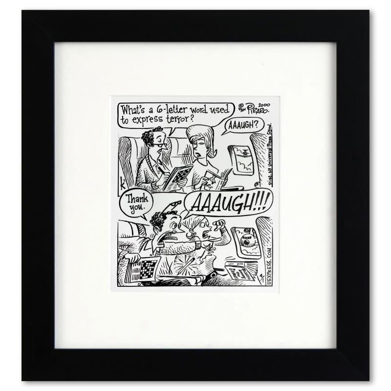 Enter a surreal and satirical world of twisted imagination and award winning creativity. "6 Letter Word" is an original pen & ink drawing on paper by Dan Piraro, creator of the critically acclaimed and award winning comic strip, Bizarro. This piece is hand signed, comes custom framed and includes a letter of authenticity. Measures approximately 12" x 11" (frame), 7" x 6" (image).This item requires special handling and may have a longer than usual turnaround.