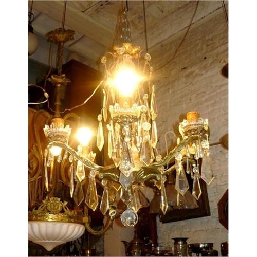 6 Lights Chandelier French Style. In very good conditions. Bronze and Crystal, all the cable are new.