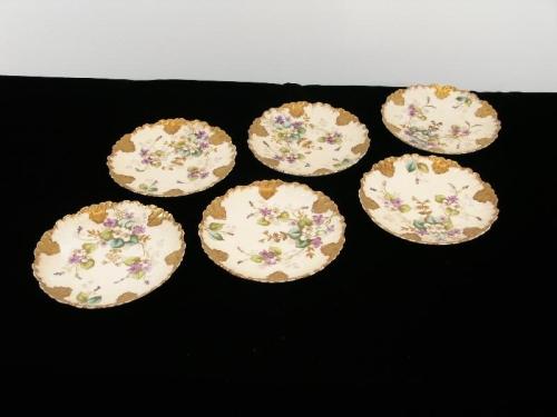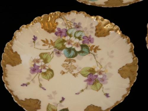 (19th / 20th Century French) Porcelain, mark verso "Limoges France AK CO", Floral motif with gilt edges, good condition, dia. 6 3/4" each.