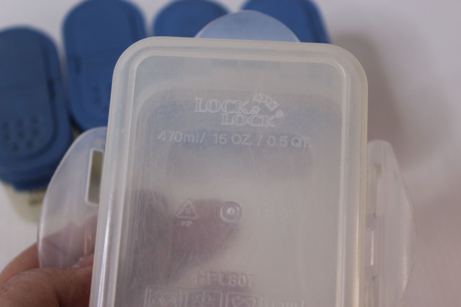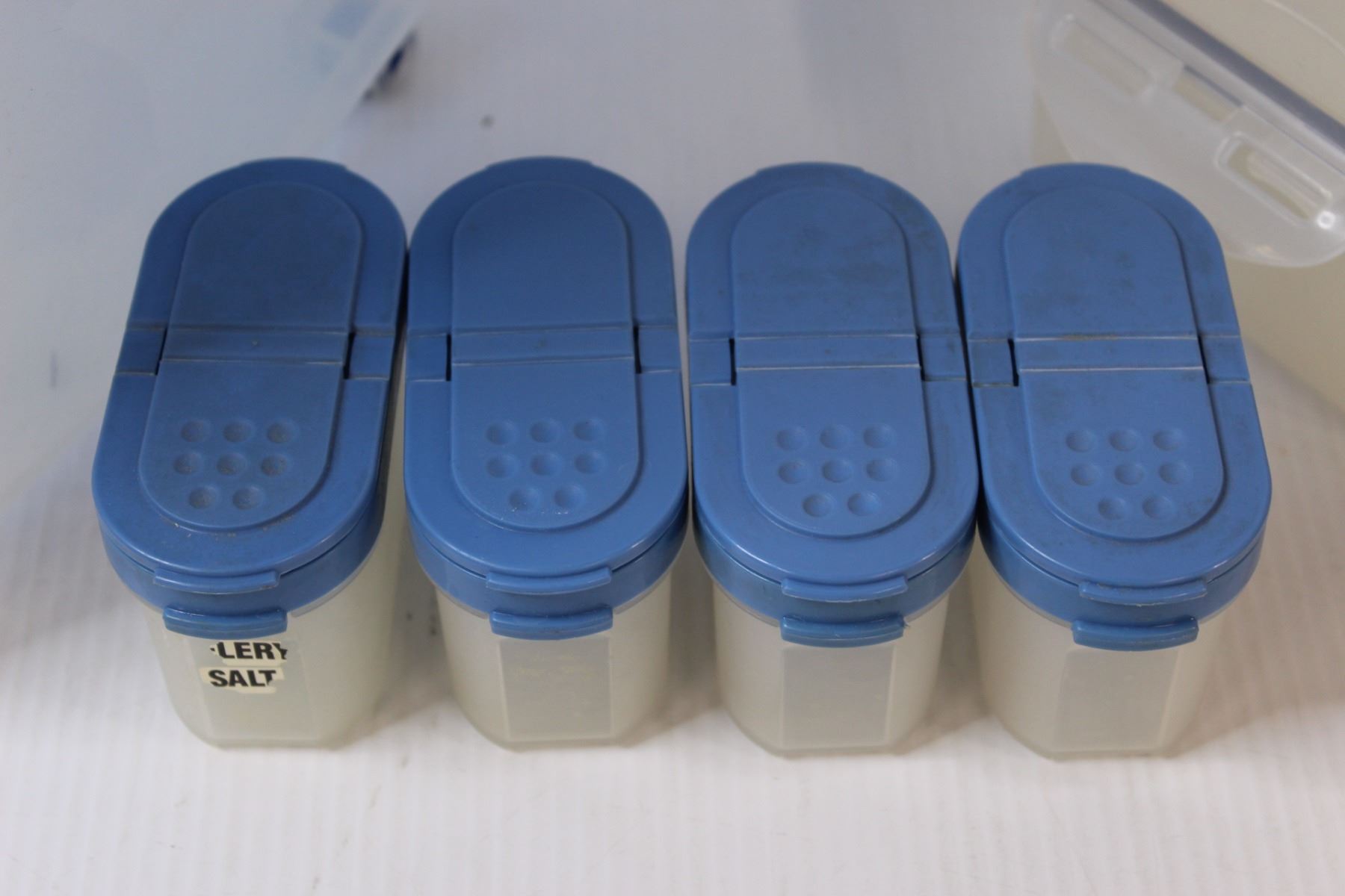 (6) Lock-Tight 7L Storage Box; Lock-Tight 15 Ounce Container; 4 - Tupperware Spice Containers