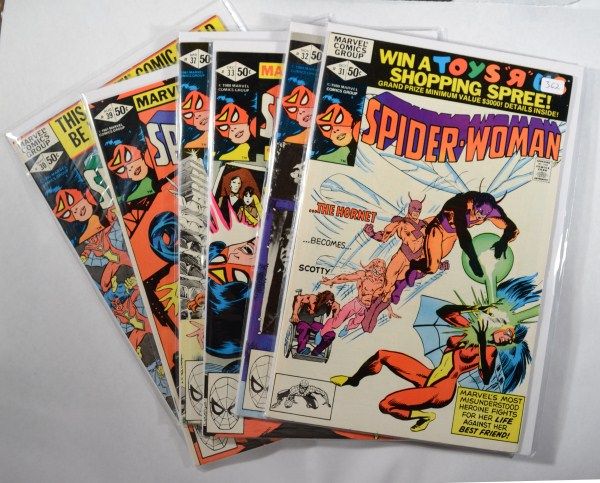 1980 THE HORNET BECOMES SCOTTY #31, WAREWOLF BY NIGHT #32., YESTERDAY VILLAIN #33, SPIDER WOMAN #30, 2-1981 SPIDER WOMAN #37 & #39,