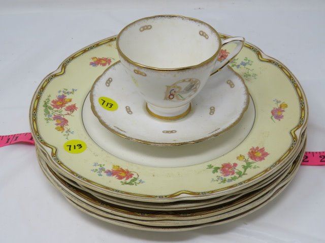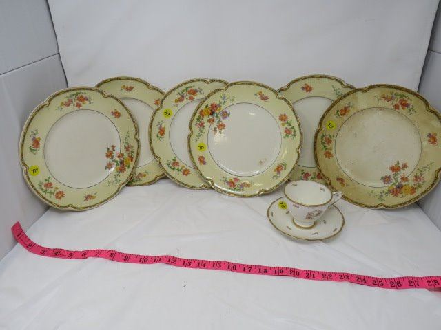 6 MATCHING PLATES (JOHNSON BROTHERS), TEA CUP & SAUCER (NO CHIPS/CRACKS)