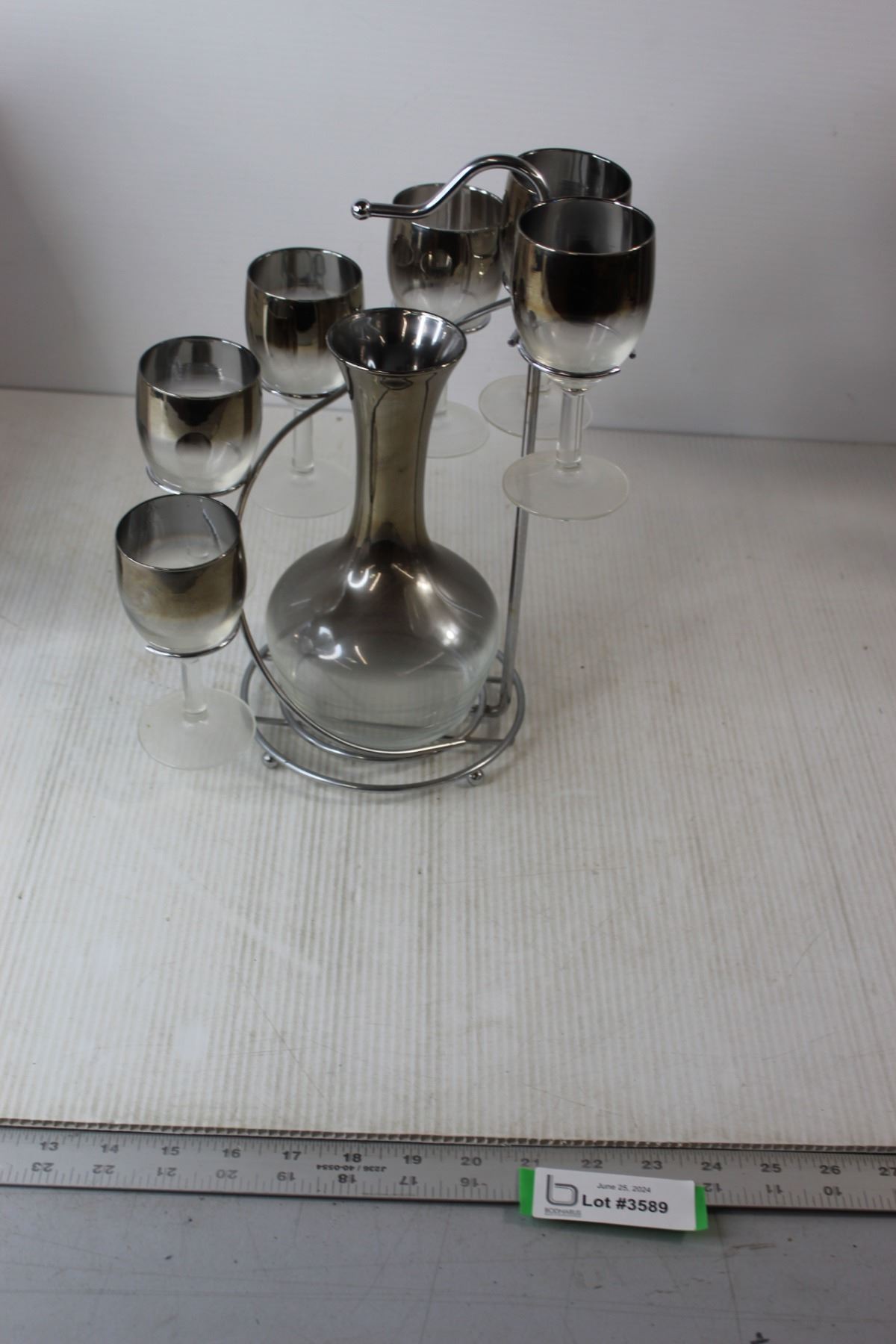 (6) MCM Silver Ombre Decanter and Glass Set w/ Holder