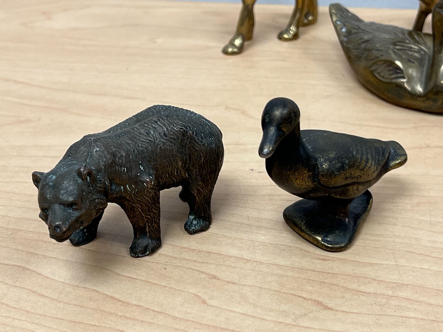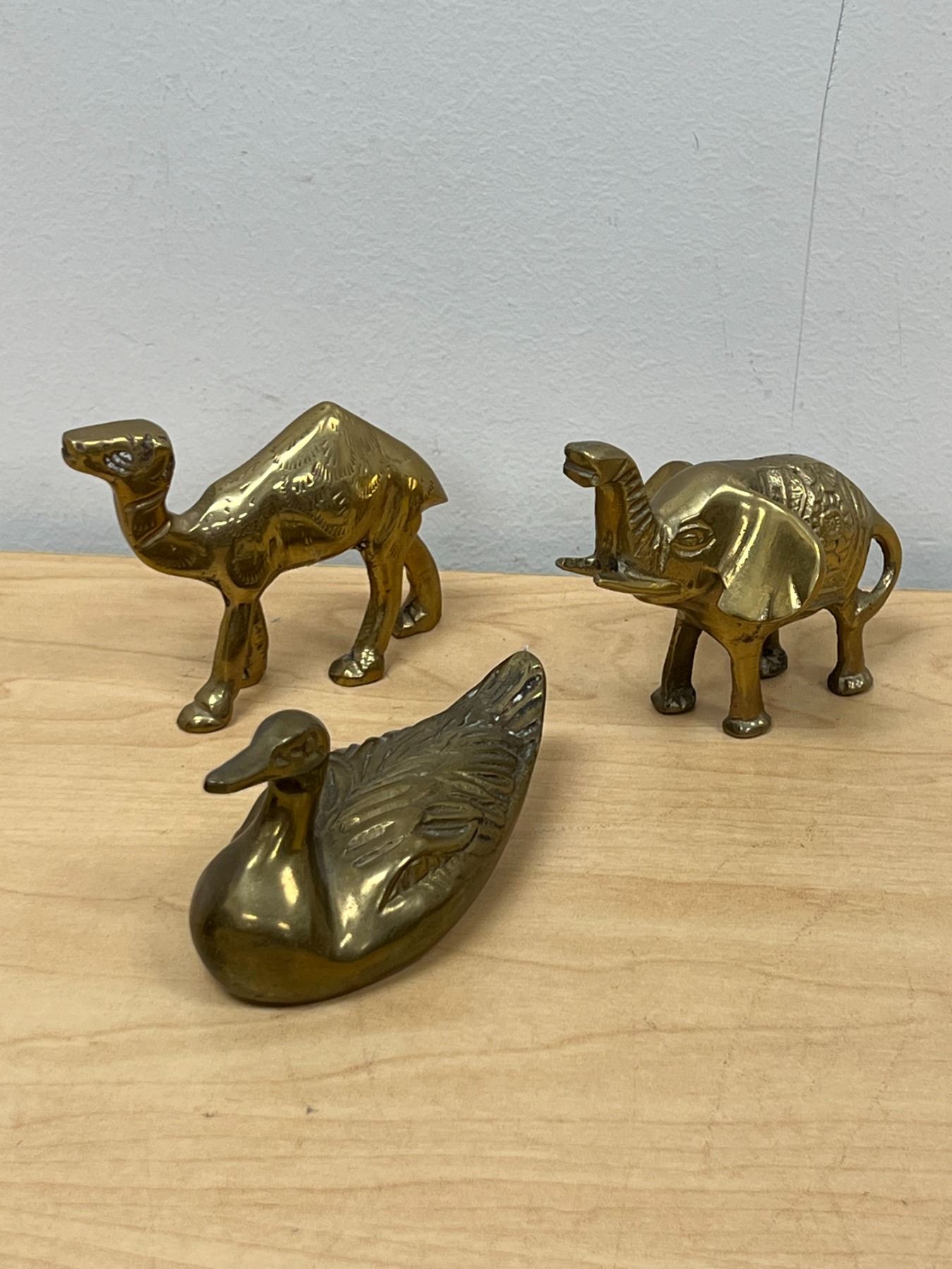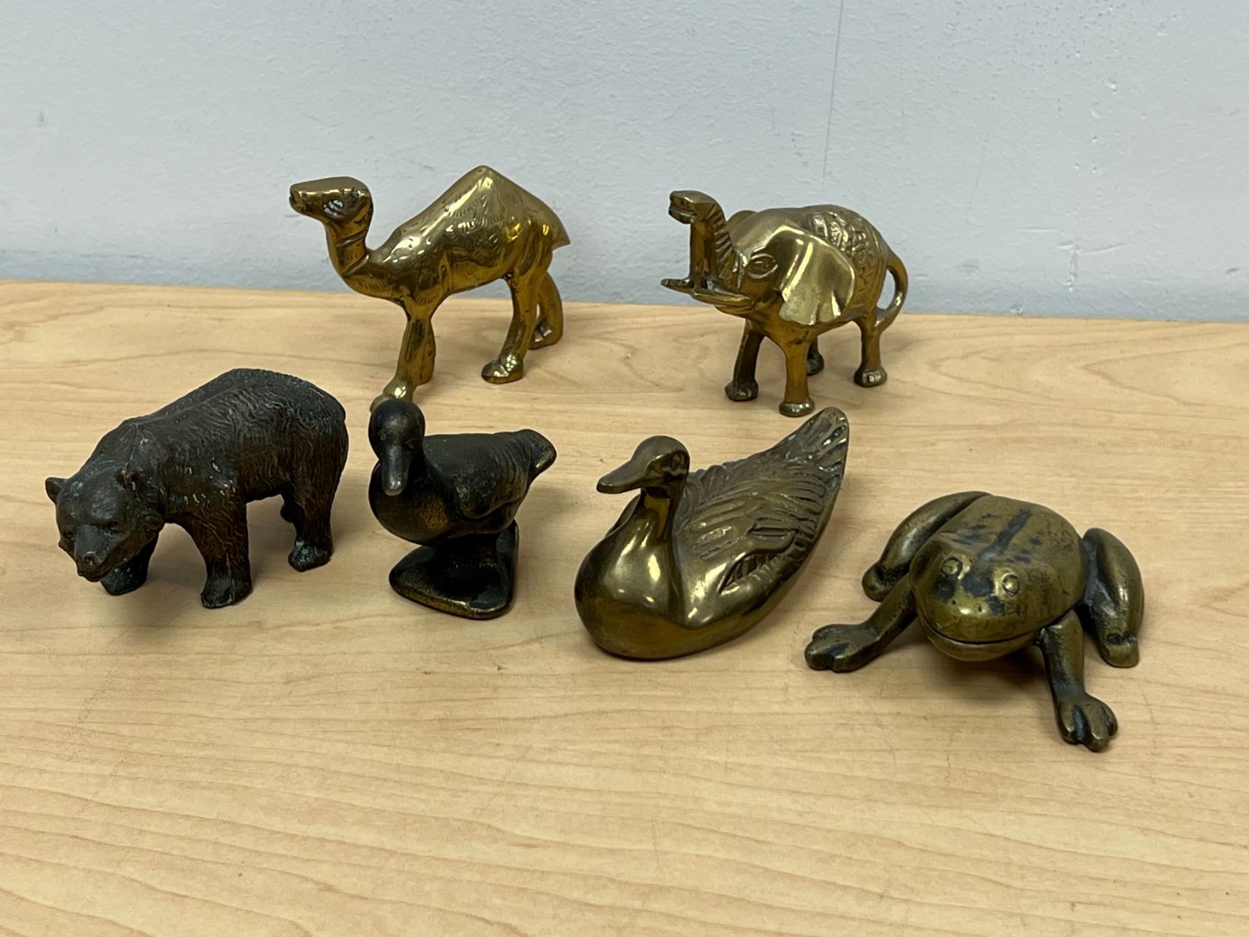 6 Metal (mostly brass) Decorative Animal Figurines (tallest about 3")