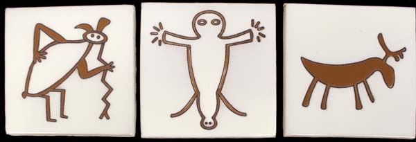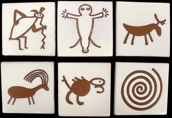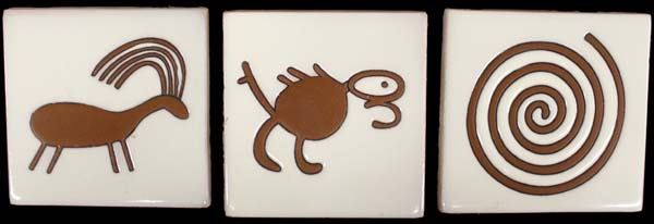 6 Mexican Petroglyph Designed Tiles, each tile measures 4''square