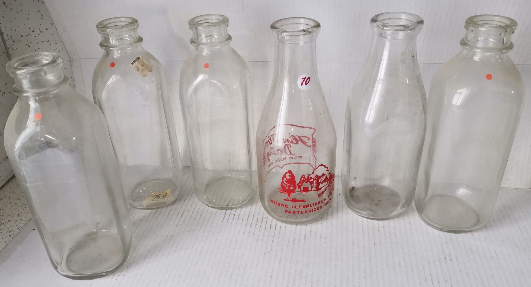 6 Milk bottles (includes Flin Flon Dairy bottle)