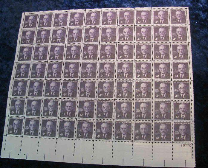 6. Mint Sheet of .04c "John Foster Dulles" Stamps. (Total face value $2.80)