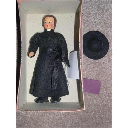 6" Missionary Man Doll. Priest doll, all original. He has brown felt for his hair. He has a pressed cloth face. Body is plastic.Box says Maria Helena on it. I don't know if this is an original box or not. Doll comes from a smoke free environment. Buyer to pay $10 for shipping, handling, and insurance. Thanks for viewing.