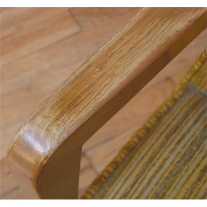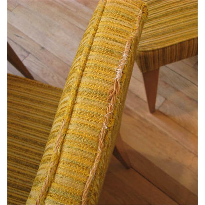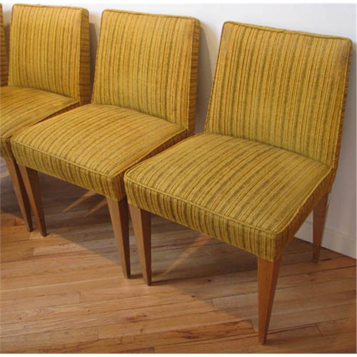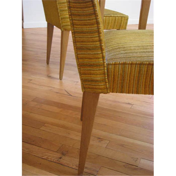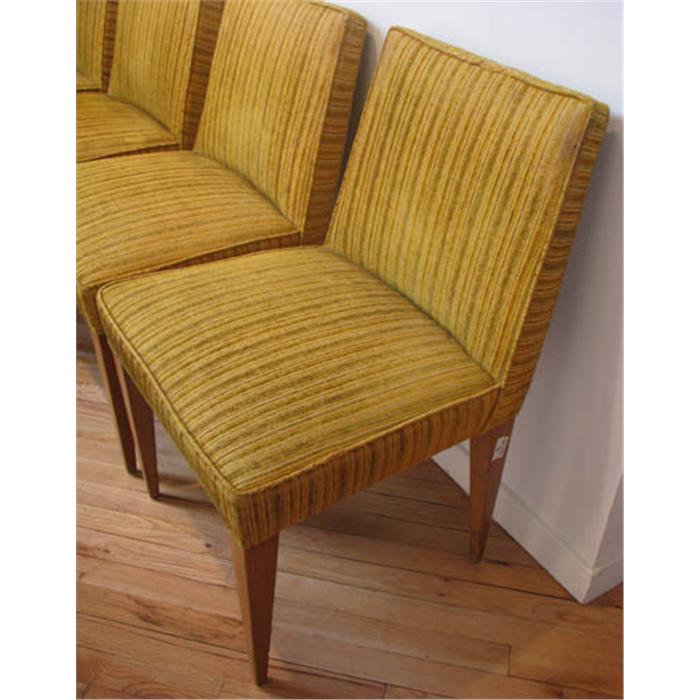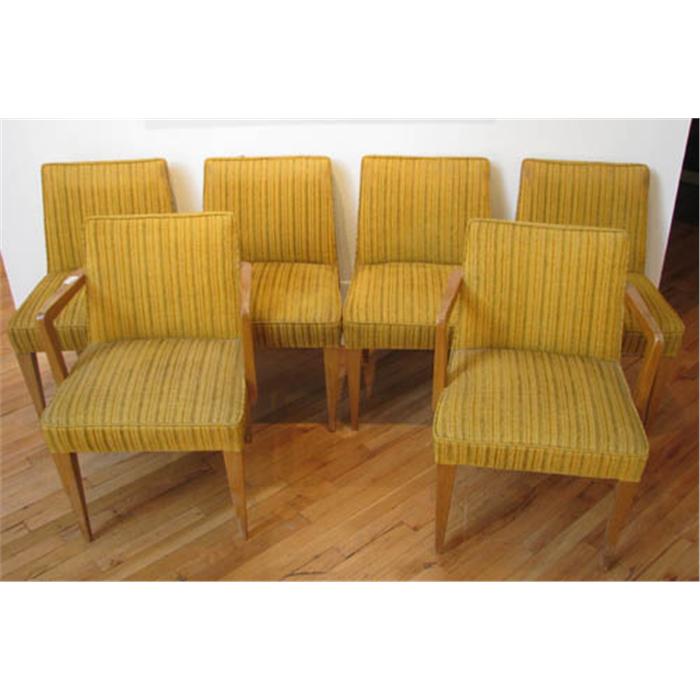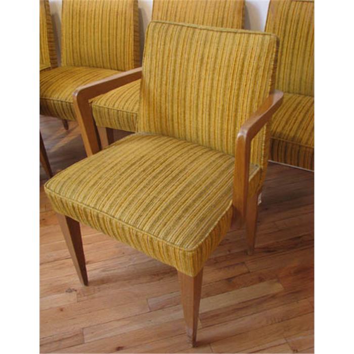 Title: 6 Modern Upholstered Dining Chairs (4 side, 2 arm) with yellow striped upholstered seats and backs