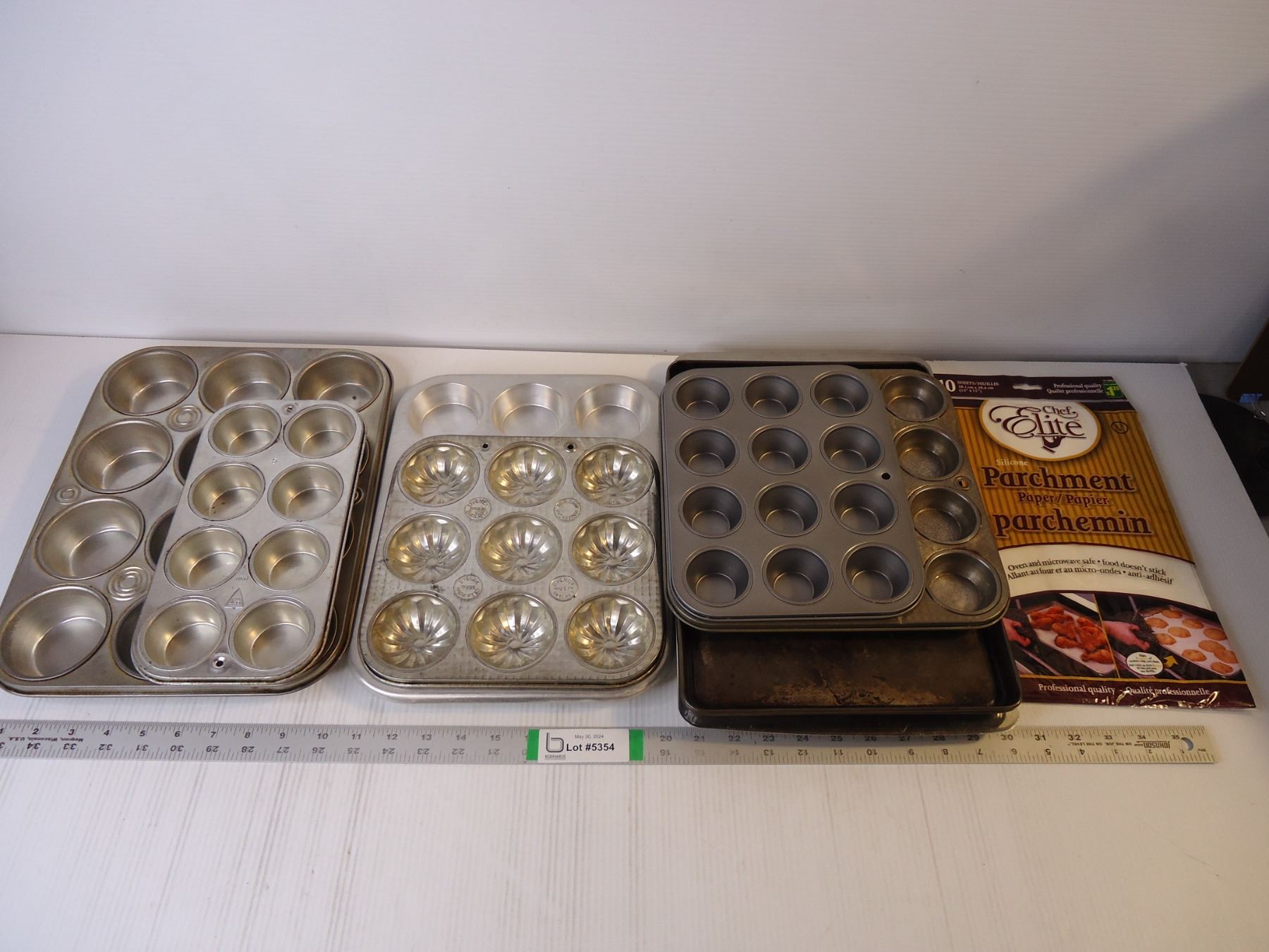 (6) Muffin/Mini Muffin Bake Pans,(2) Baking Pans, Parchment Paper and Metal Tray