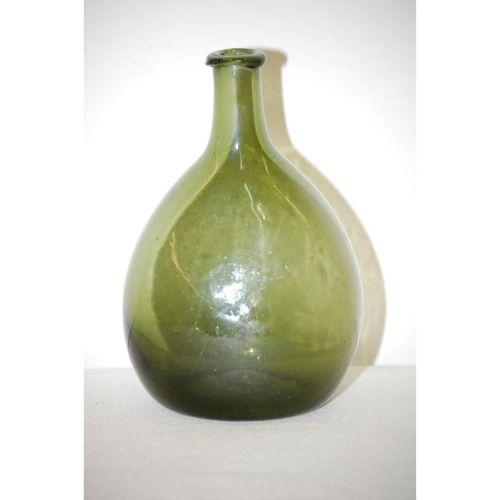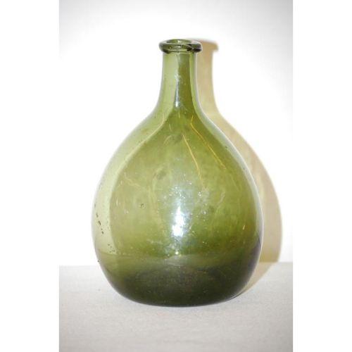 6" NEW ENGLAND CHESTNUT BOTTLE - LIGHT GREEN W/ APPLIED TOP & OPEN PONTIL - MINOR WEAR, GOOD CONDITION