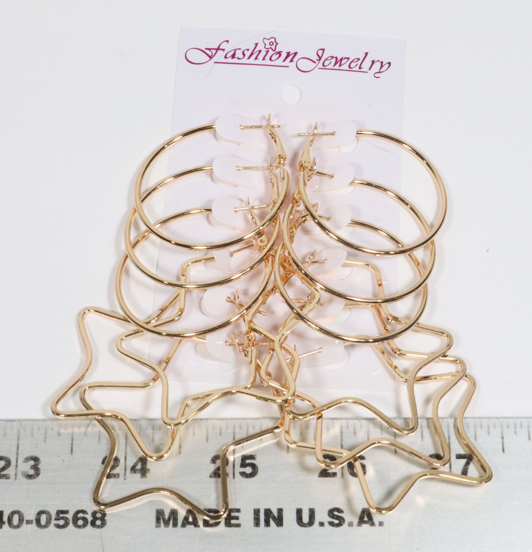 3 ROUND HOOP SETS AND 3 STAR HOOPS. FASHION JEWELRY***ITEM(S) LOCATED IN LETHBRIDGE ALBERTA. SMALL ITEMS ONLY ARE AVAILABLE FOR FREE TRANSPORT TO EDMONTON OFFICE (READ AUCTION DETAILS FOR MORE INFORMATION)