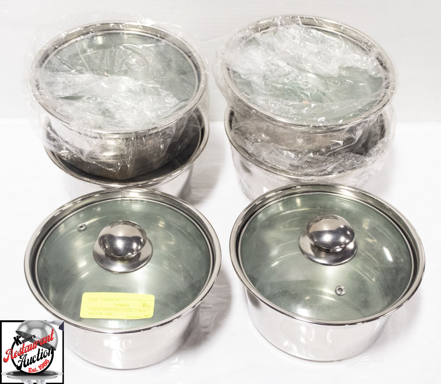 6 NEW STAINLESS STEEL 7" HOT POTS W/ LIDS
