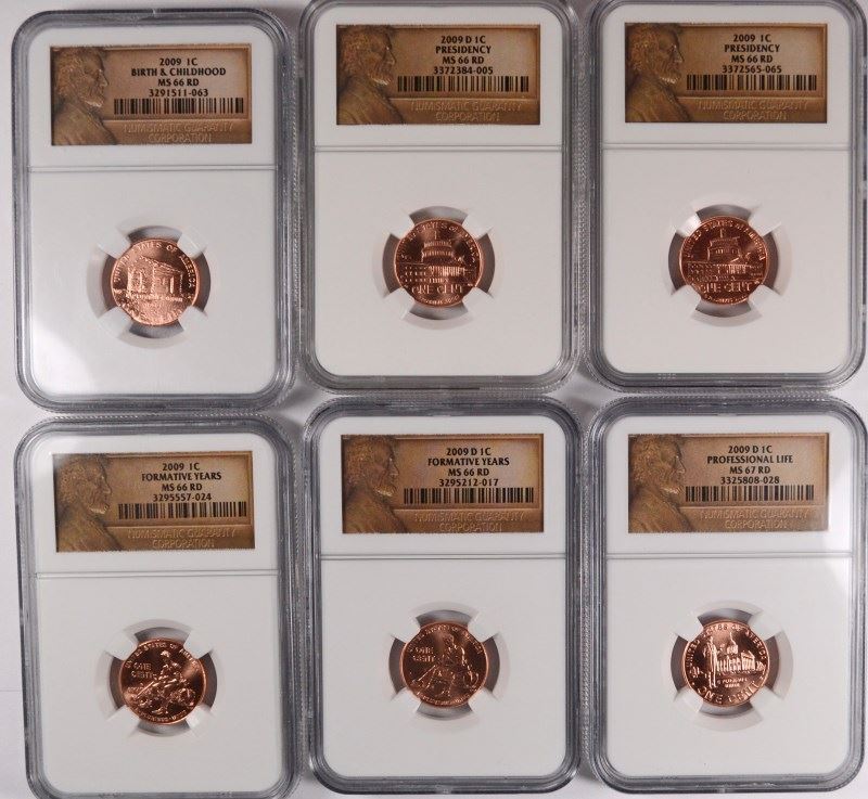 09 BIRTH MS-66 RED, 09 & 09-D PRESIDENCY MS-66 RED, 09 & 09-D FORMATIVE YEARS MS-66 RED & 09-D PROFESSIONAL LIFE MS-67 RED, ESTIMATE, $100.00 TO $125.00