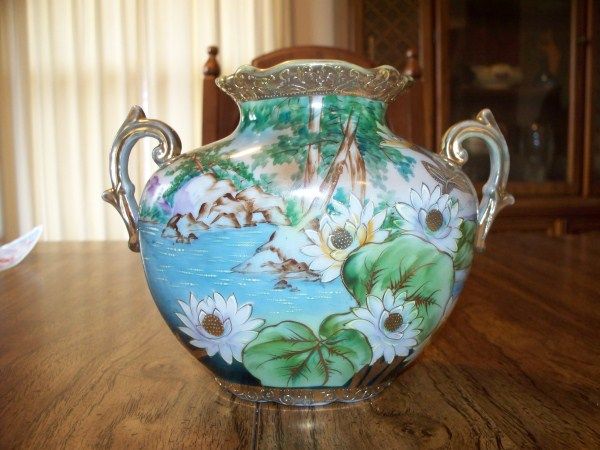 6" NIPPON VASE, DBL HANDLE, MAGNOLIAS