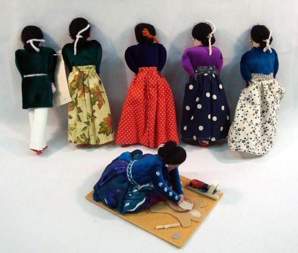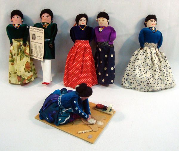 6 Native American Navajo Hand Made Dolls. Tallest doll measures approx. 8''H. Some dolls have tag with artist name ''Isabelle Jim'' with certificate of authenticity.