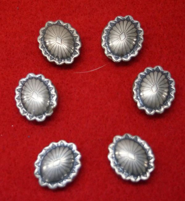 From the Tucson, Arizona Collection. From the Tucson, Arizona Collection. 6 Navajo Sterling Silver Stamped Concho Button Covers, each measures 7/8''L x 5/8''W, beautifully stamped