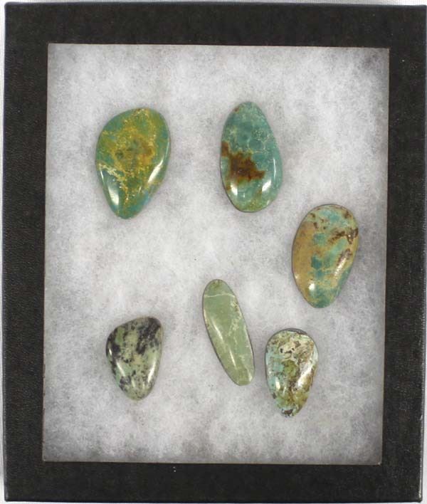 6 Nevada Turquoise Polished Cabochons, largest measures 1.5'' x 7/8'', gorgeous colors and matrix