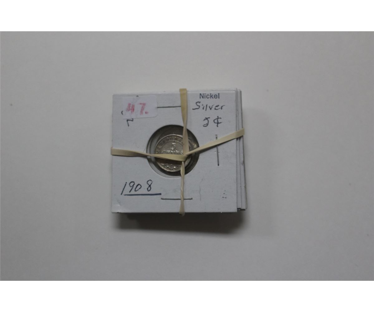 6 Nfld. 5 Cent Silver Coins - all 1908 (damaged)
