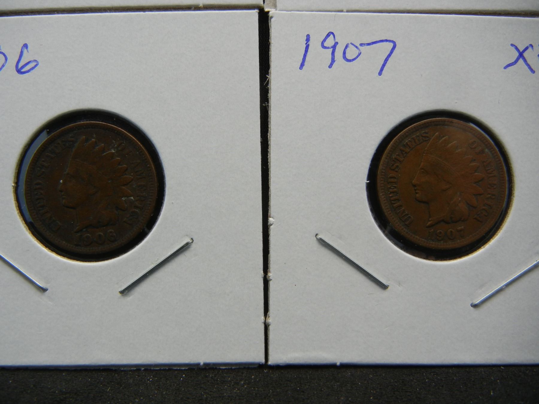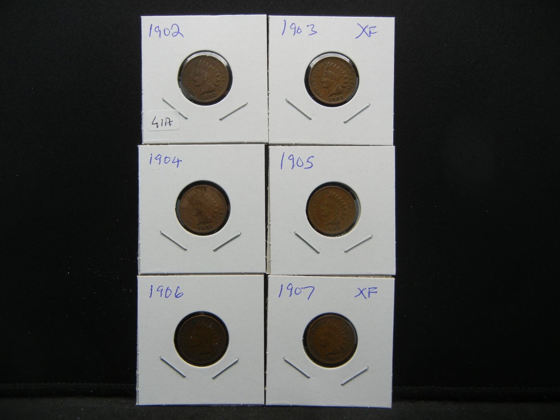 (6) Nice Indian Cents; all full libs with 1902, 03 XF, 04, 05, 06, and 07 XF.