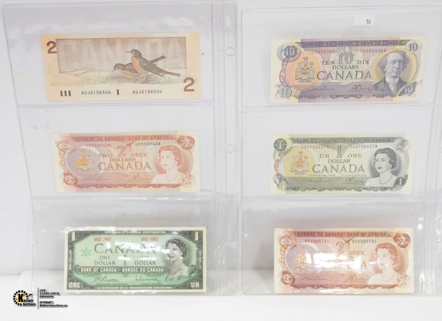 6 OLD CANADA $10-$1 VARIOUS BANK NOTES