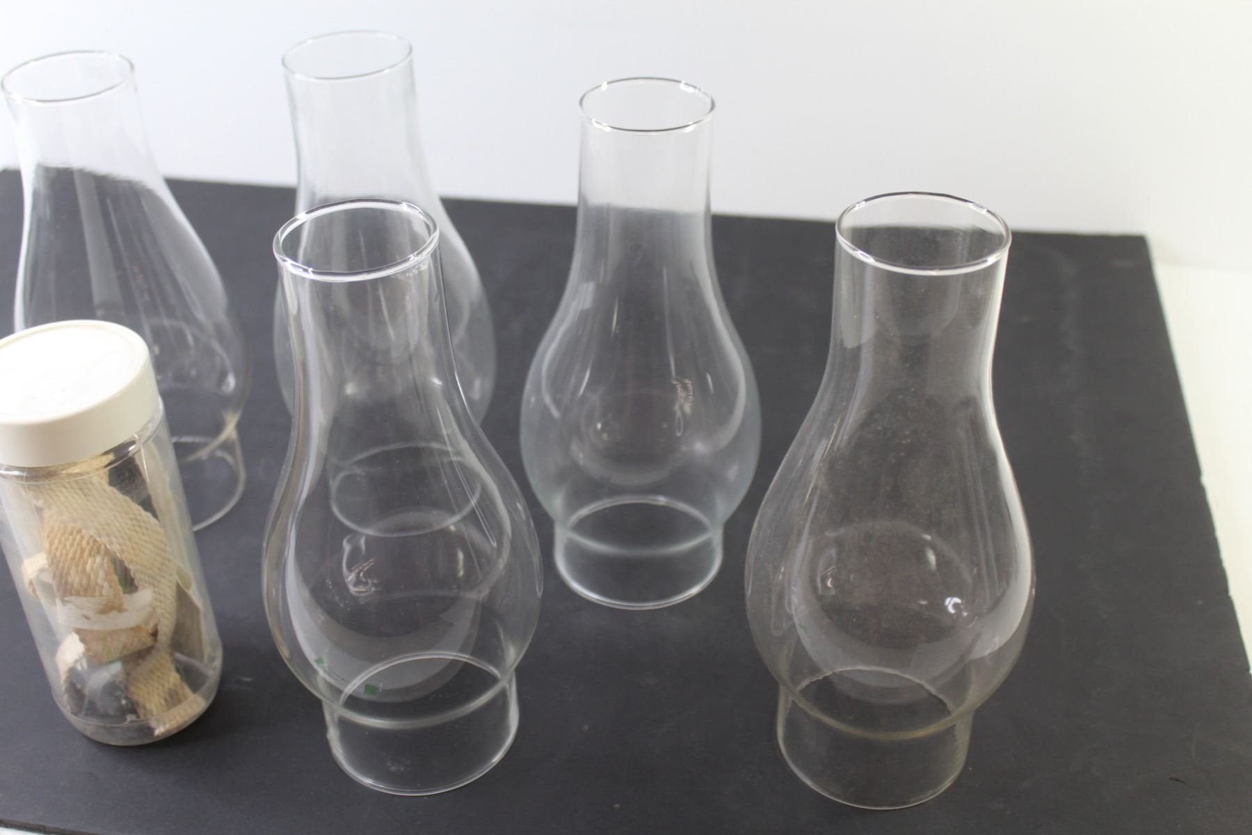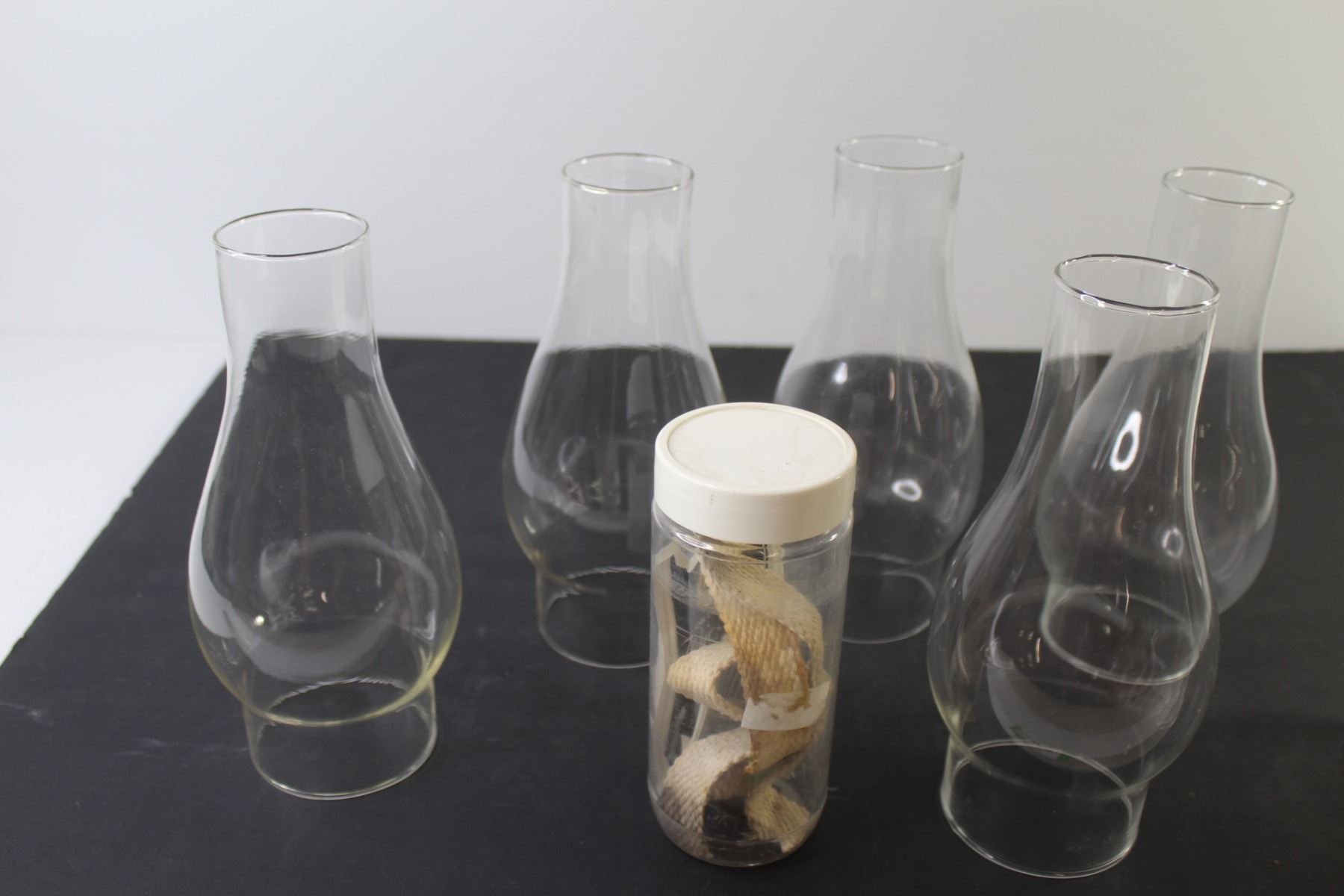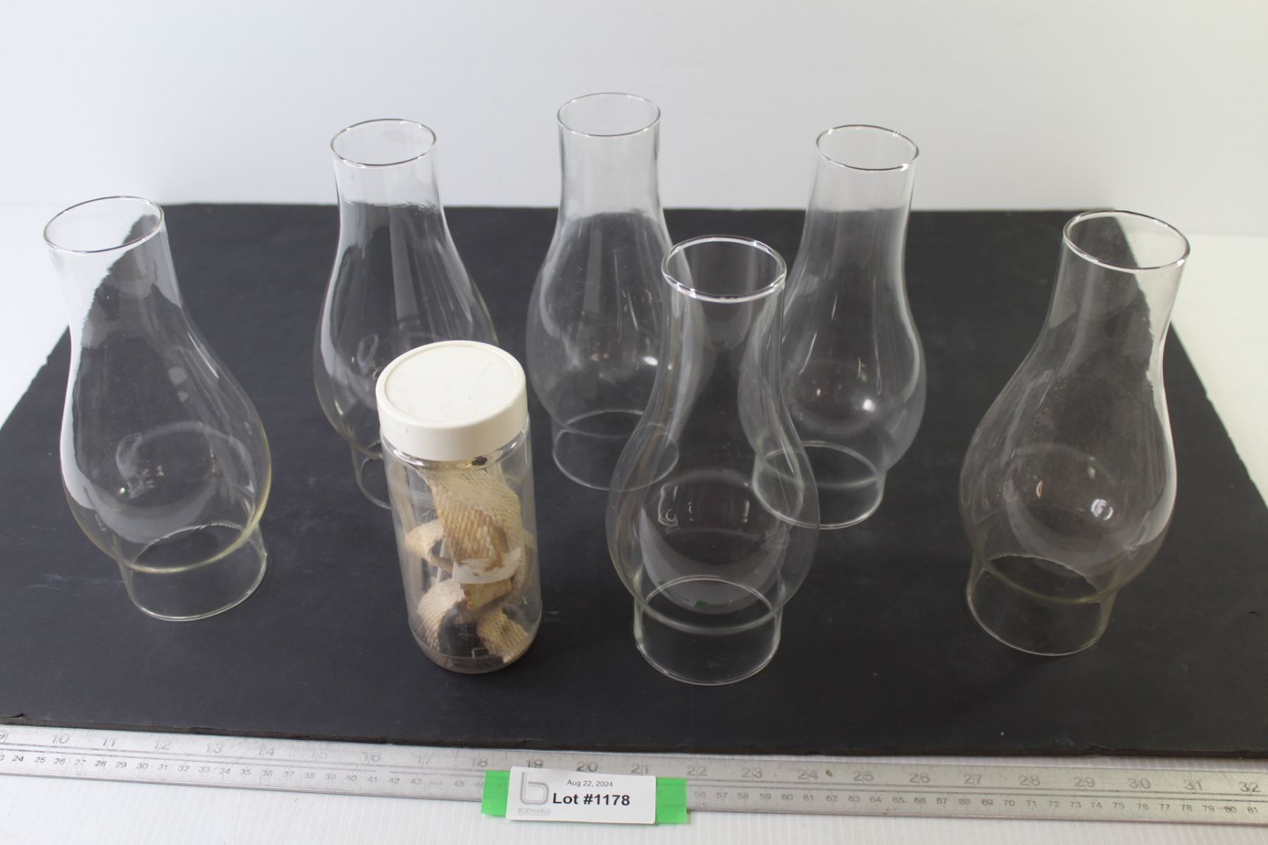(6) Oil Lamp Chimneys - Container w/Wicks