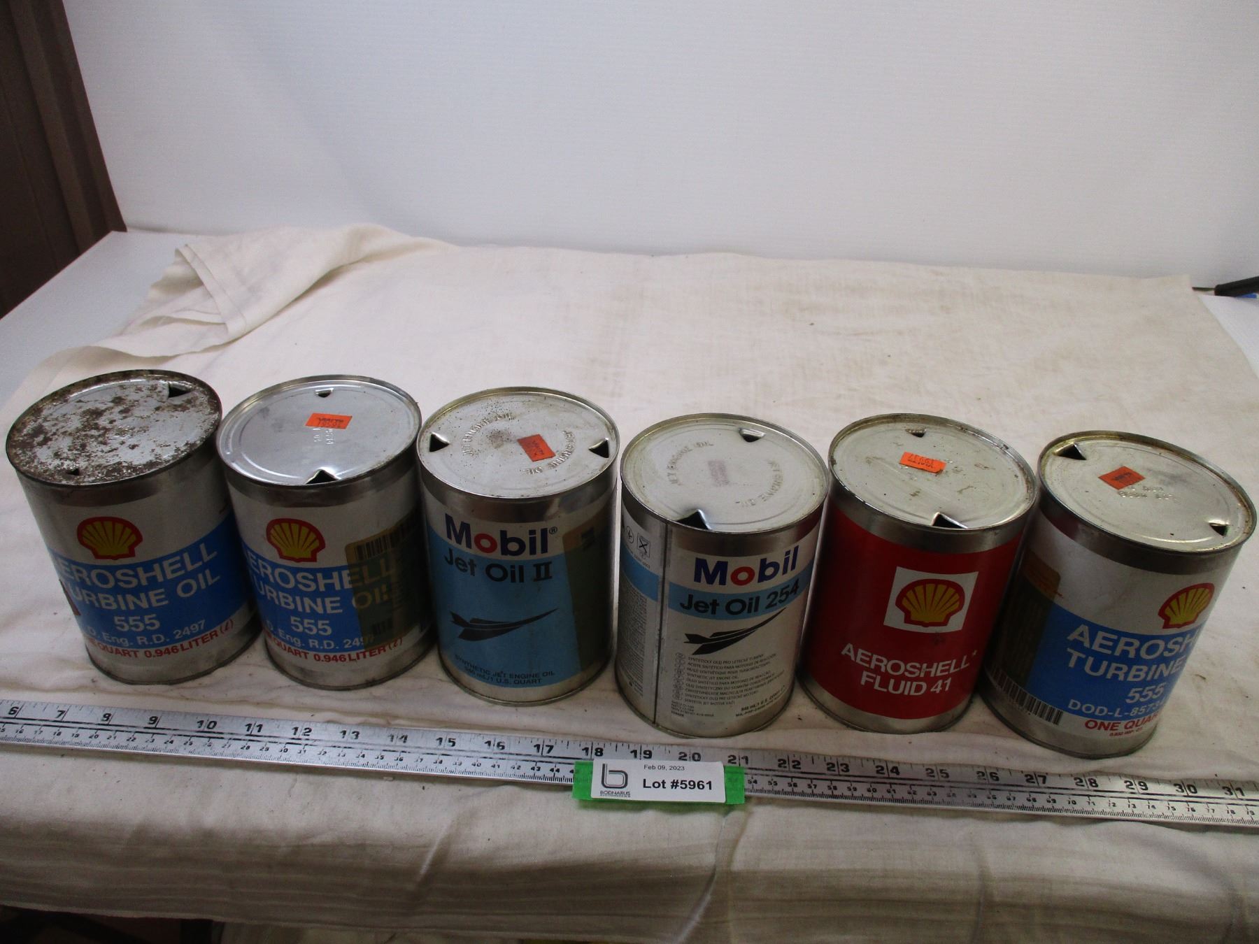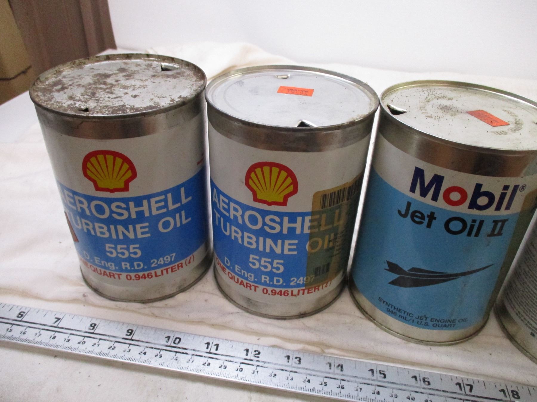 (6) Oil Tins (Mobil, Aeroshell)