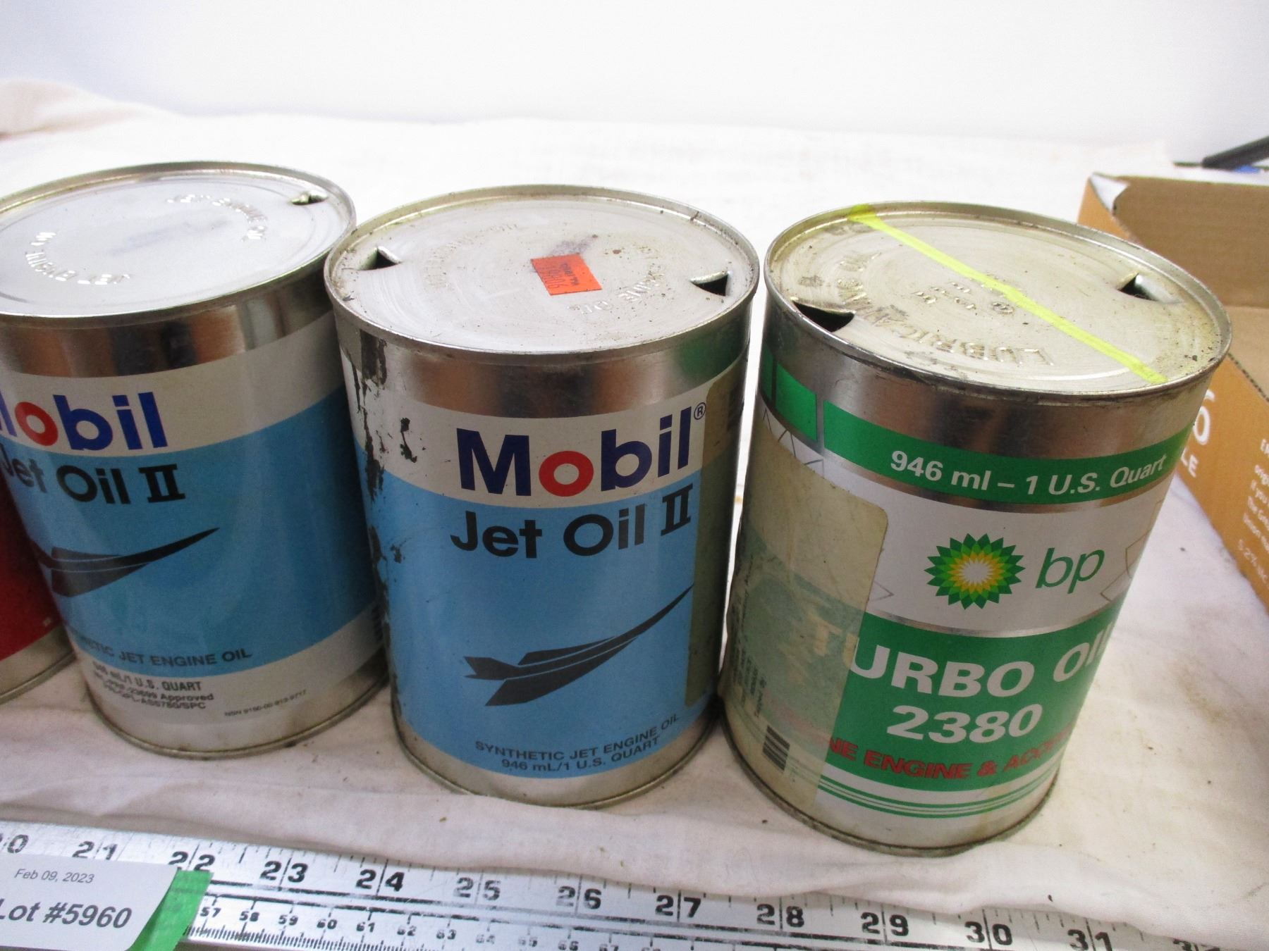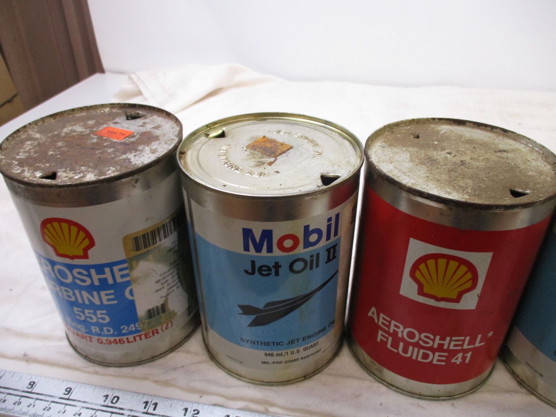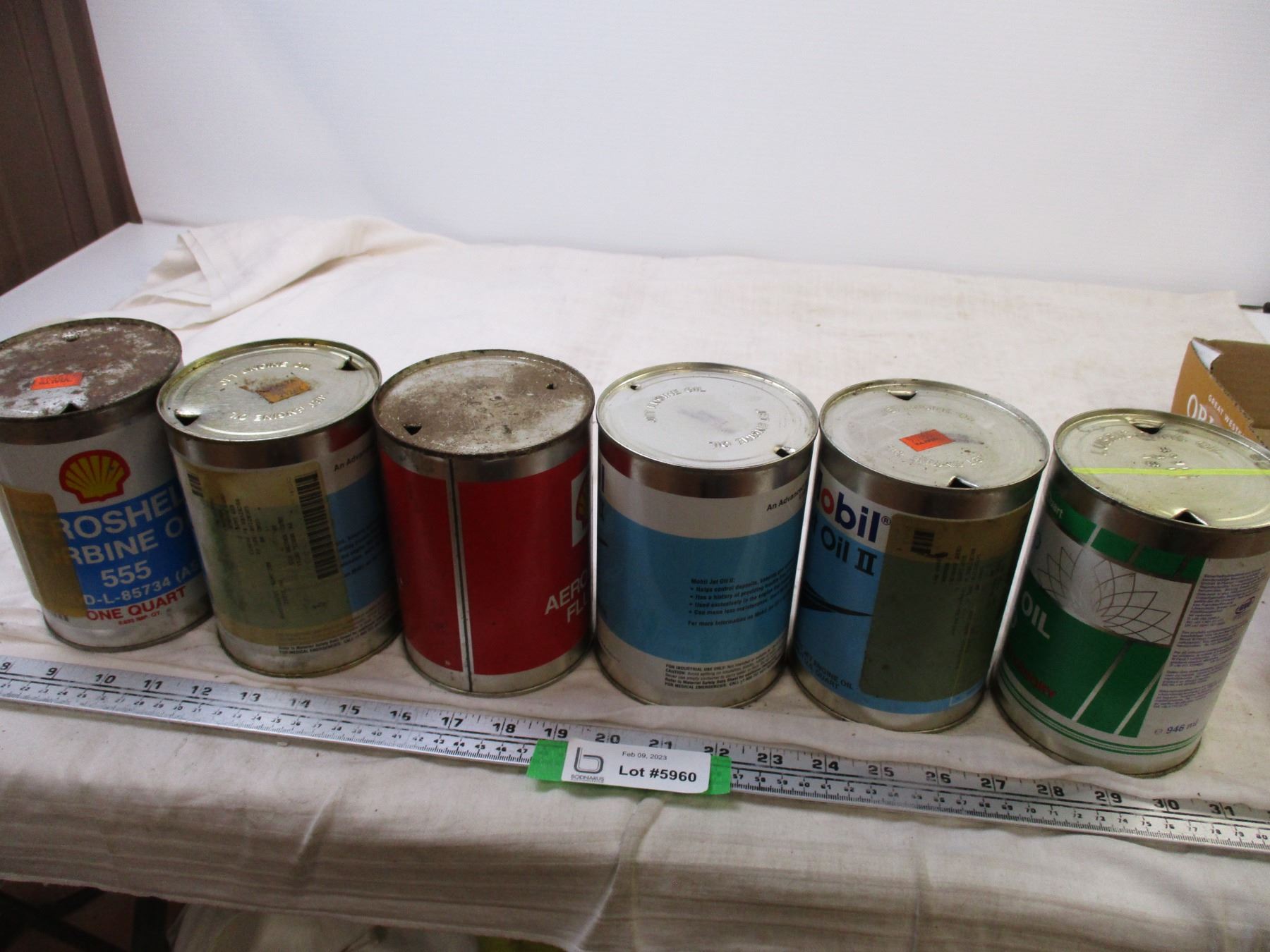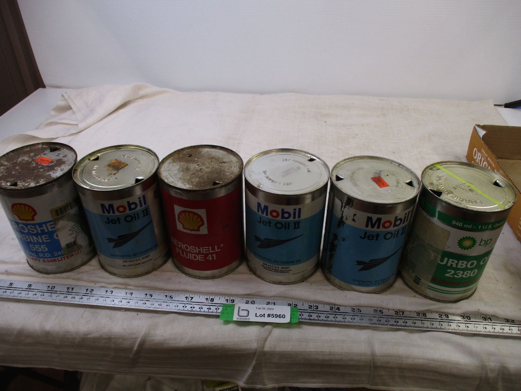 (6) Oil Tins (Mobil Jet, Aeroshell, Turbo)